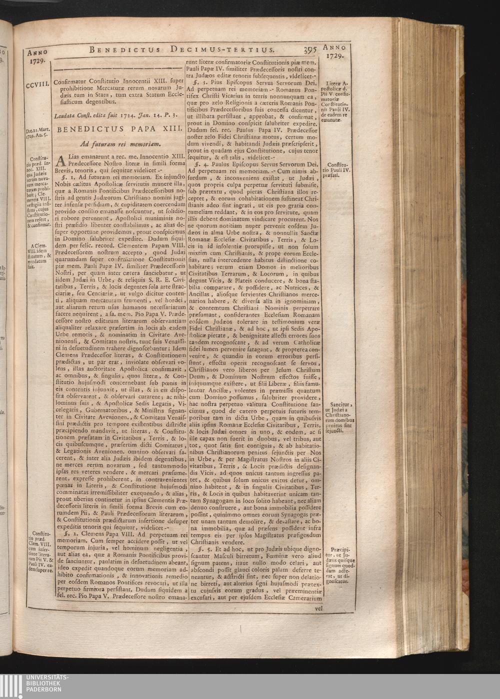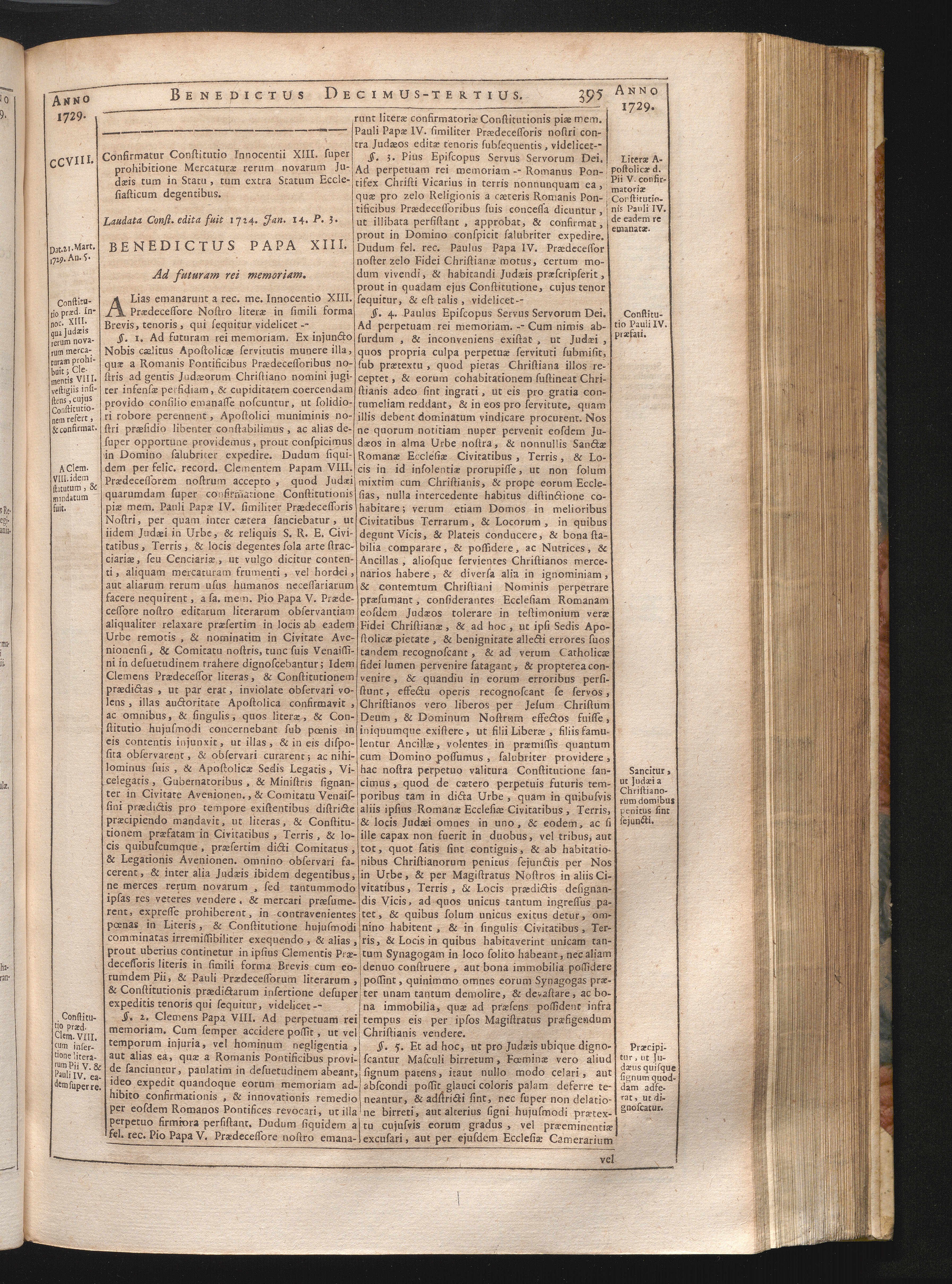 CCVIII. Confirmatio Const. Inn. XIII., circa mercaturas rerum novarum a Judæis non[...]