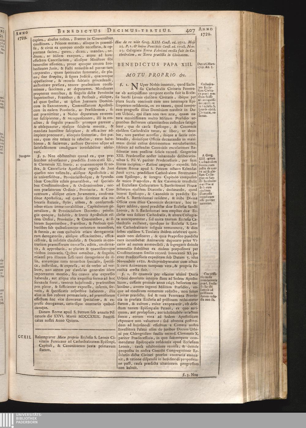 Tomus Decimus-Tertius = Continuationis Pars VII (1740) Complectens Constitutiones ab Innocentio XIII. & Benedicto XIII. editas