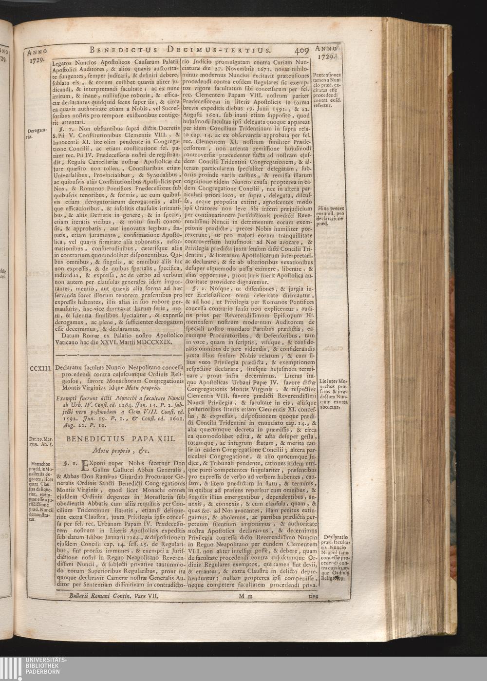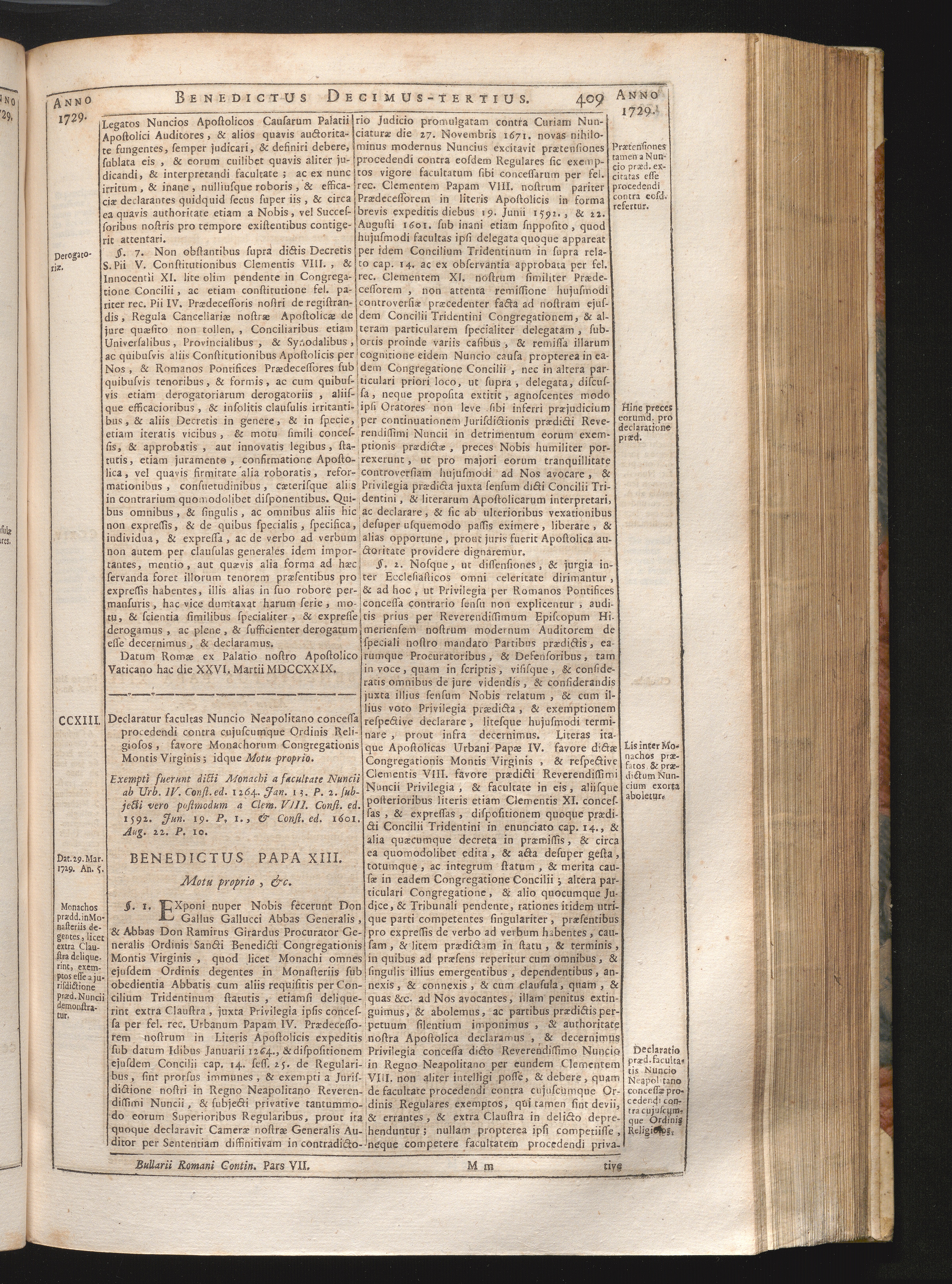 Tomus Decimus-Tertius = Continuationis Pars VII (1740) Complectens Constitutiones ab Innocentio XIII. & Benedicto XIII. editas