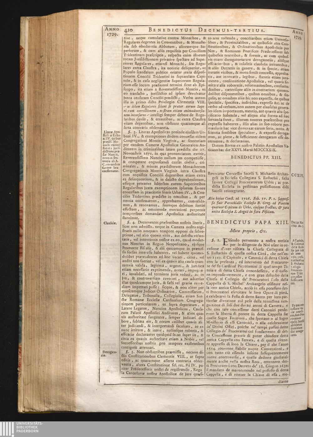 Tomus Decimus-Tertius = Continuationis Pars VII (1740) Complectens Constitutiones ab Innocentio XIII. & Benedicto XIII. editas
