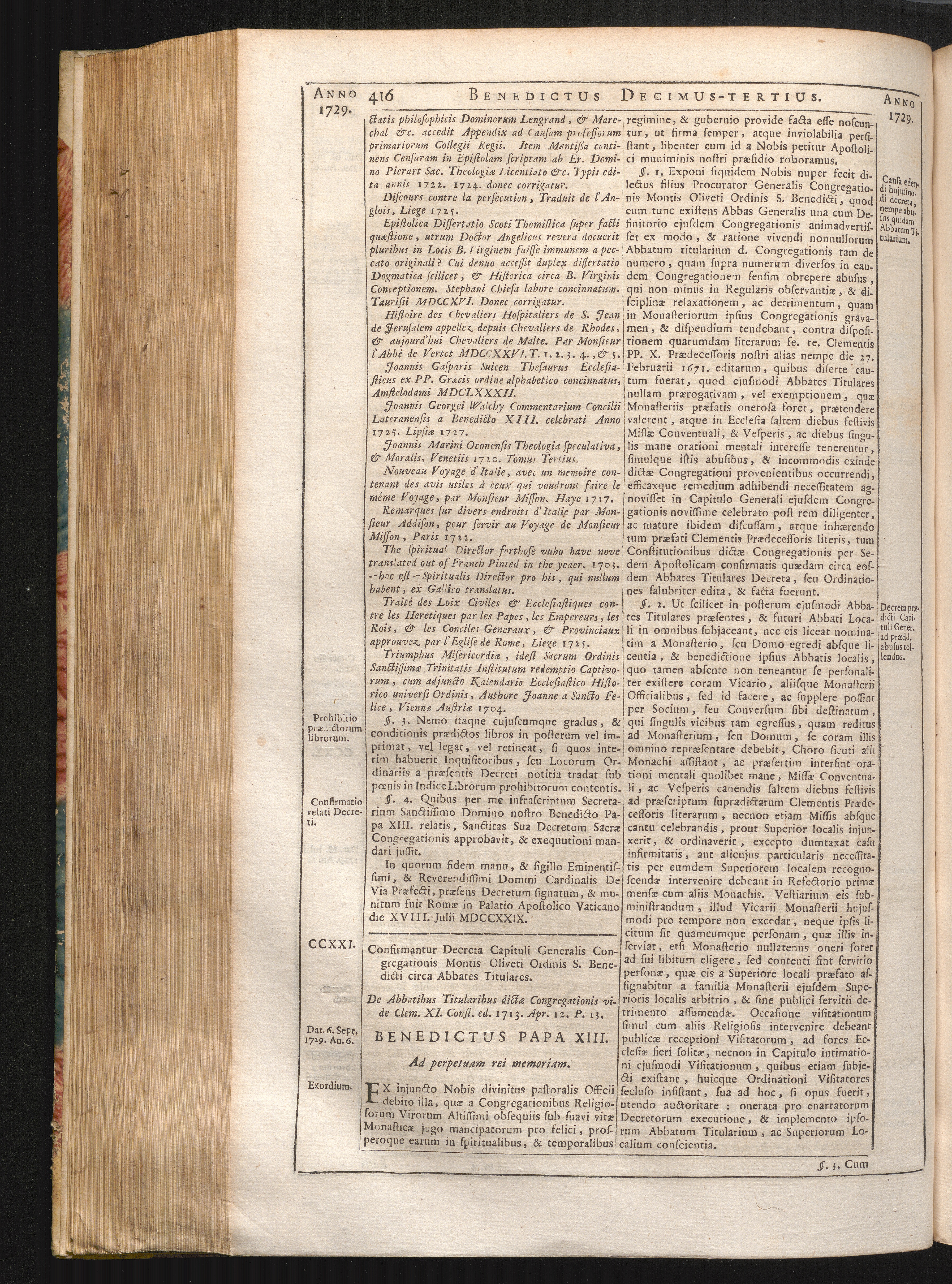 CCXXI. Statuta circa Abbates Titul. Congr. Montis Oliveti Ord. S. Benedicti.
