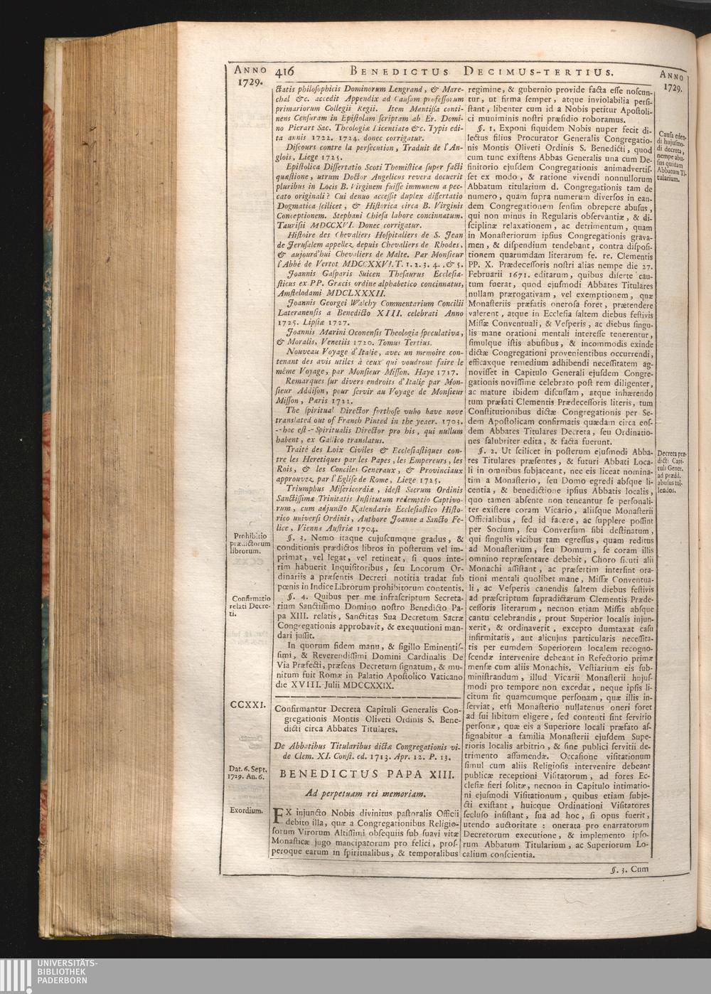 Tomus Decimus-Tertius = Continuationis Pars VII (1740) Complectens Constitutiones ab Innocentio XIII. & Benedicto XIII. editas