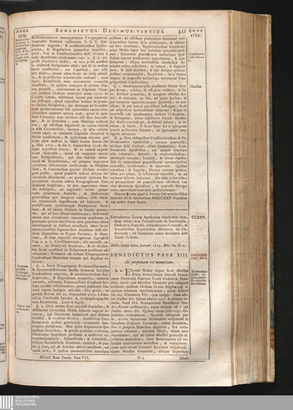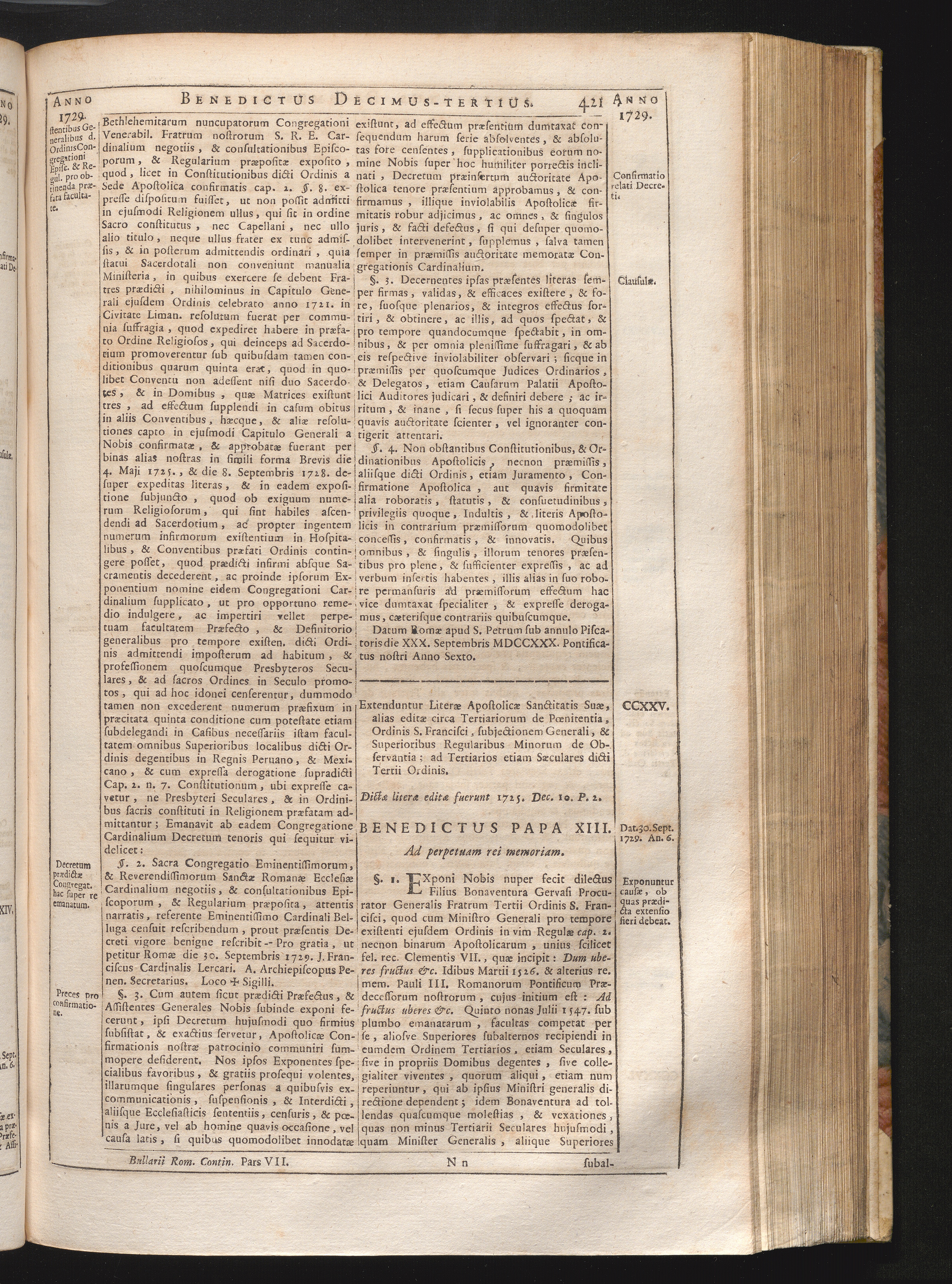 Tomus Decimus-Tertius = Continuationis Pars VII (1740) Complectens Constitutiones ab Innocentio XIII. & Benedicto XIII. editas