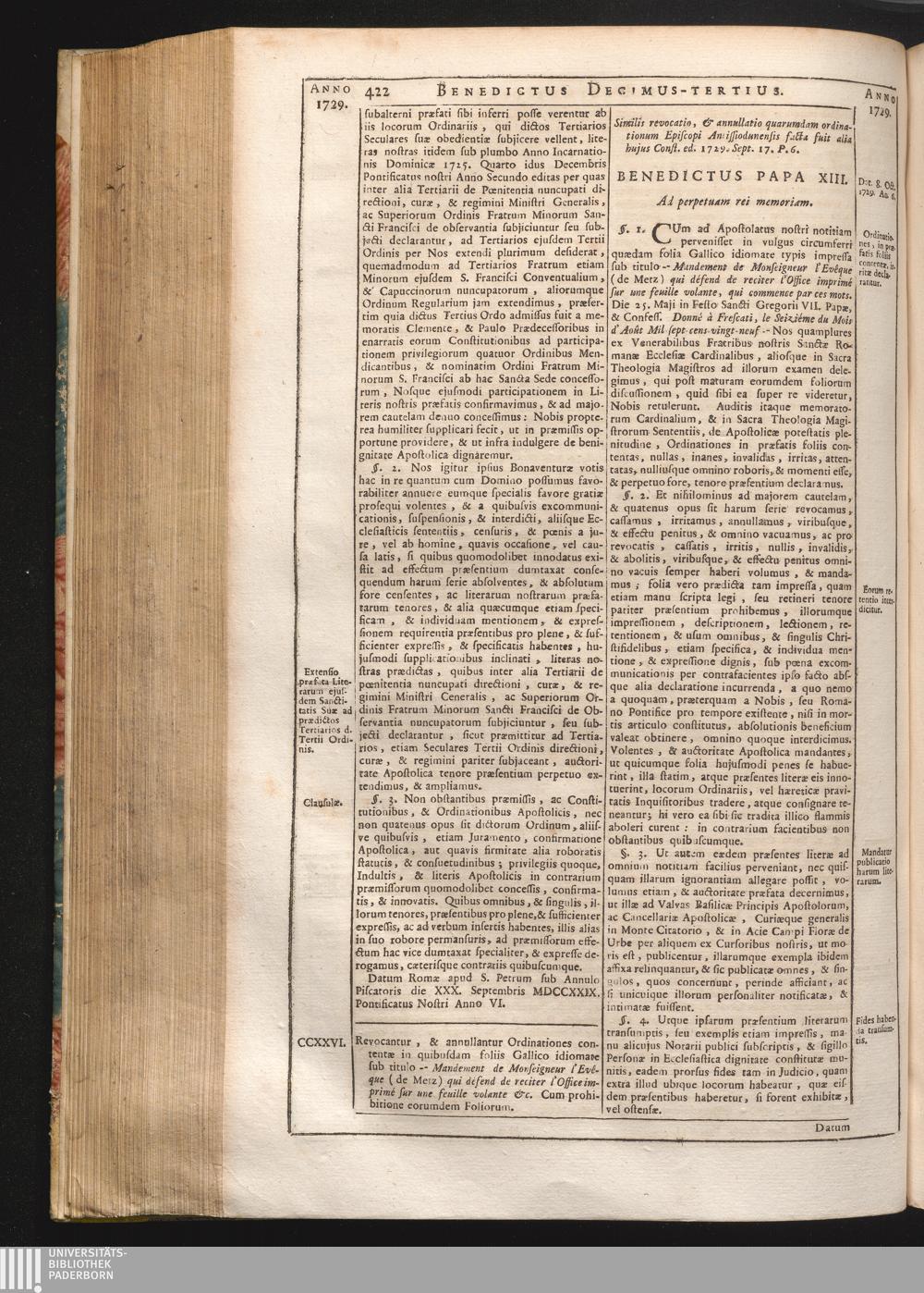 Tomus Decimus-Tertius = Continuationis Pars VII (1740) Complectens Constitutiones ab Innocentio XIII. & Benedicto XIII. editas