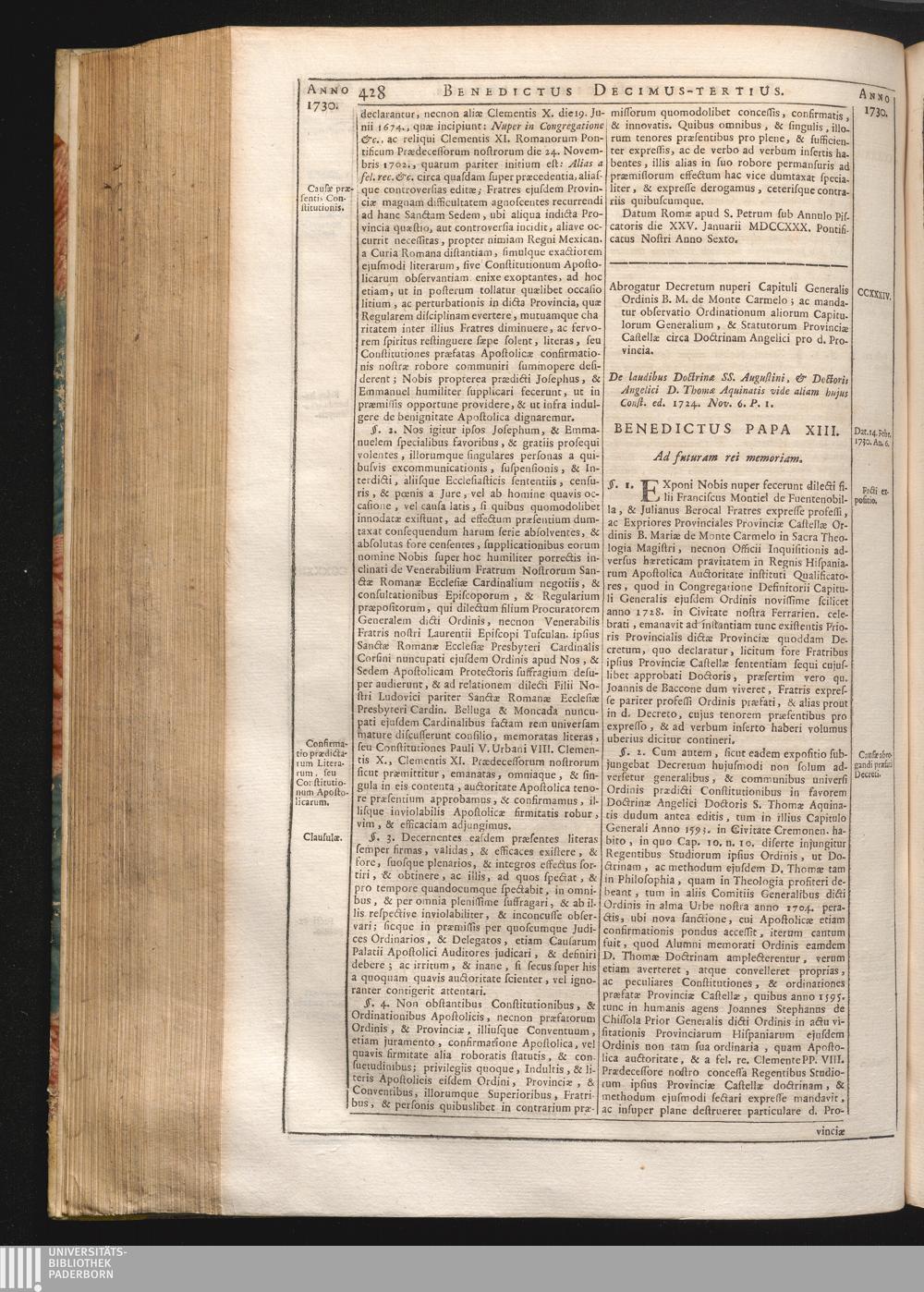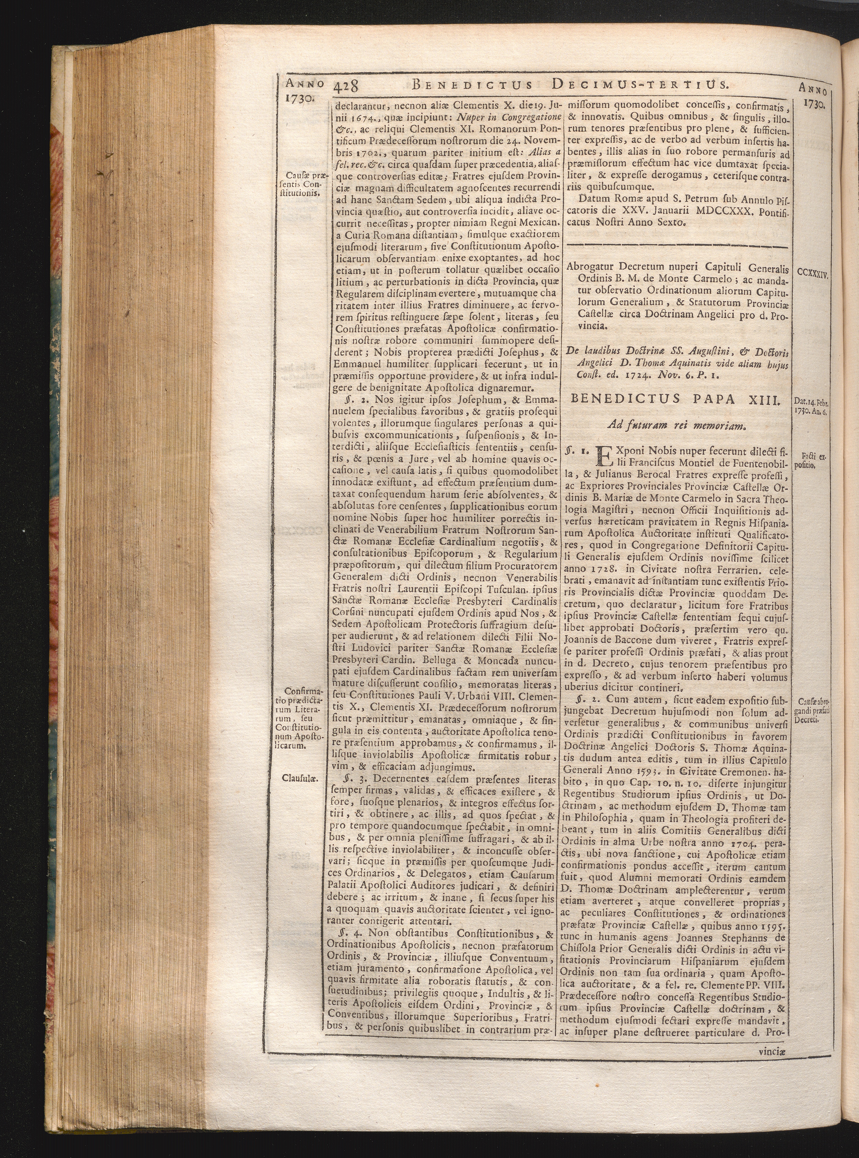 Tomus Decimus-Tertius = Continuationis Pars VII (1740) Complectens Constitutiones ab Innocentio XIII. & Benedicto XIII. editas
