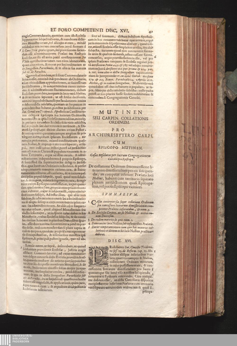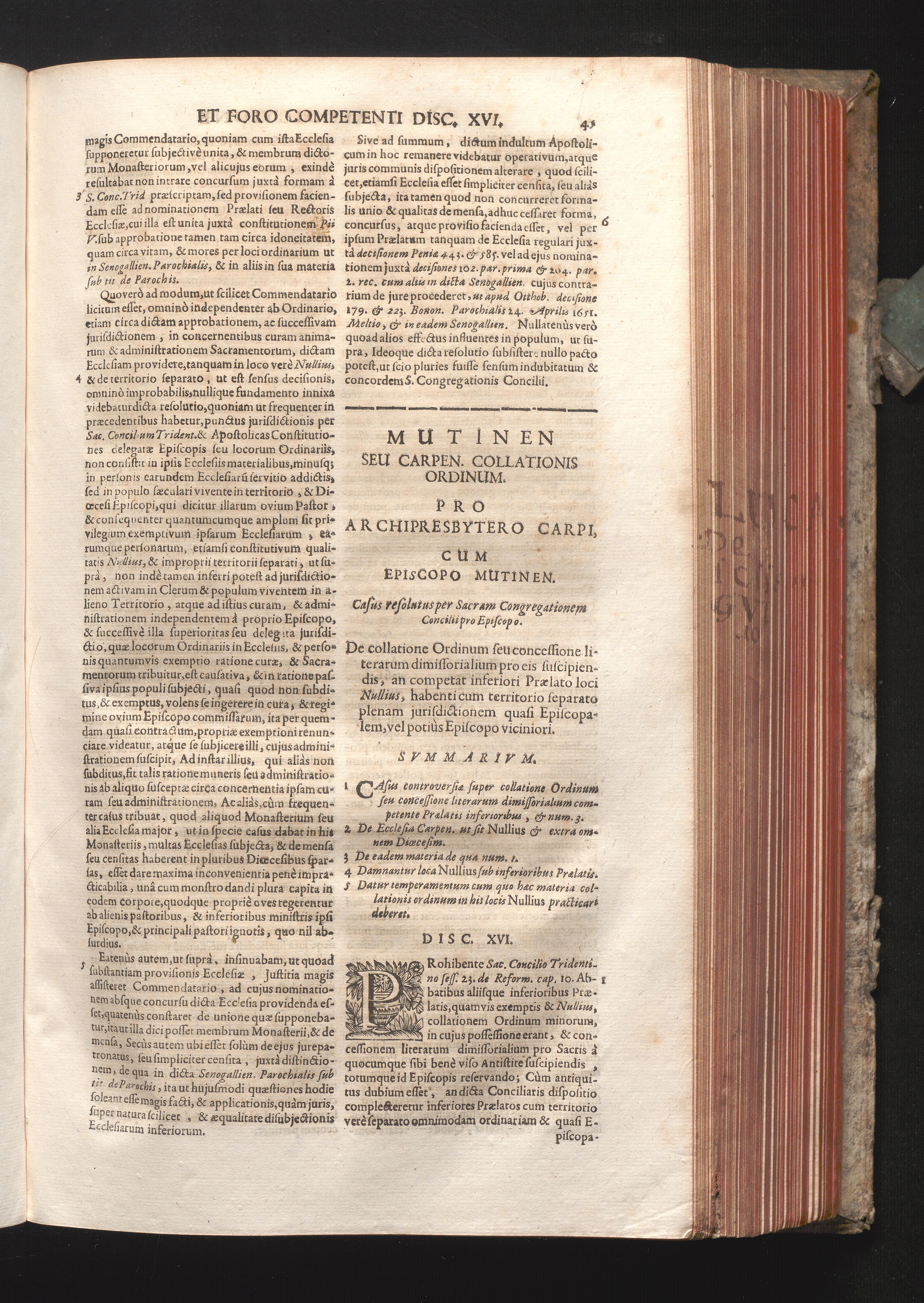 Disc. XVI. Mutinen. seu Carpen. collationis ordinum. De collatione ordinum, seu concessione[...]