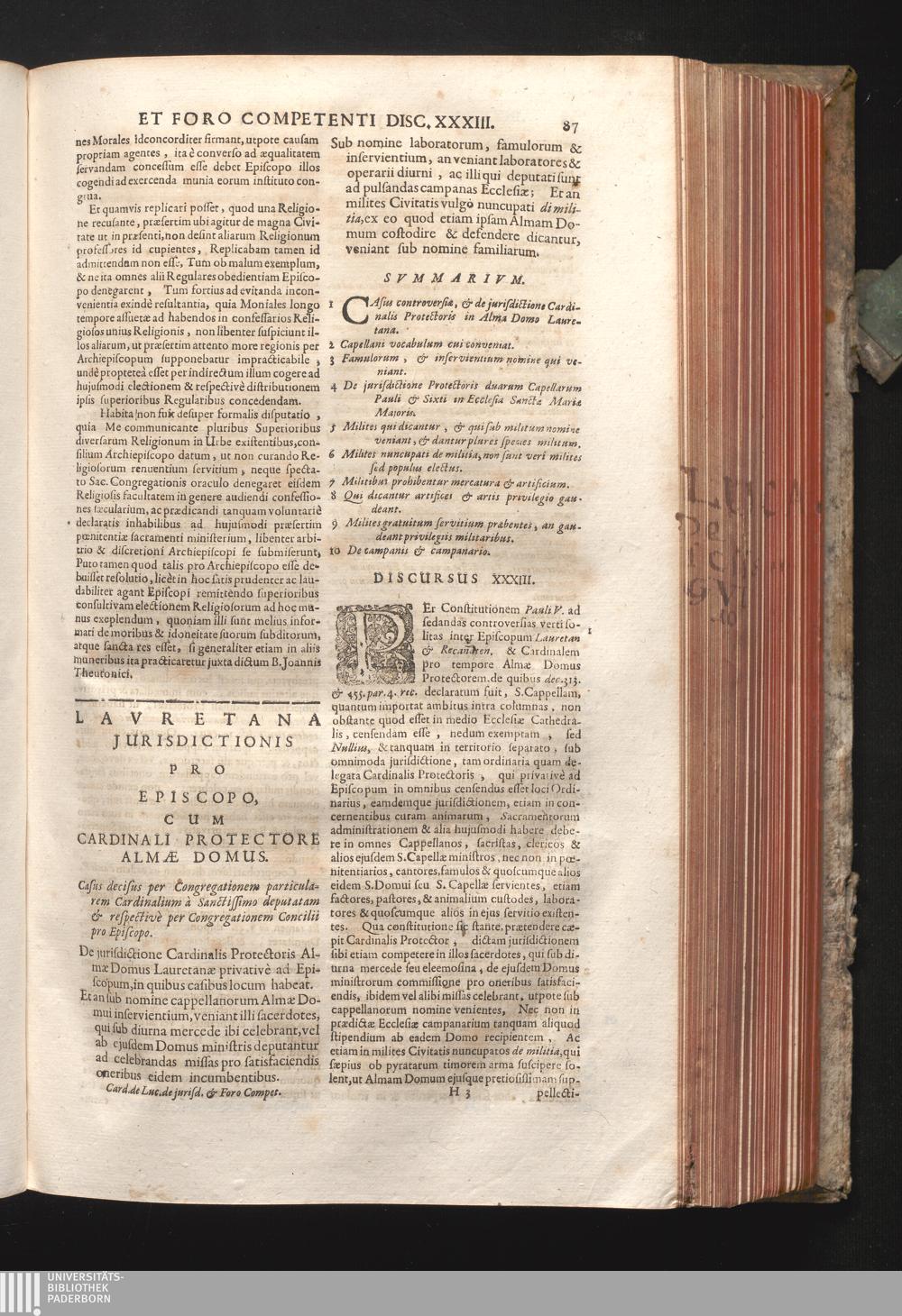 Disc. XXXIII. Lauretana jurisdictionis. De jurisdictione Cardinalis Protectoris Almæ[...]