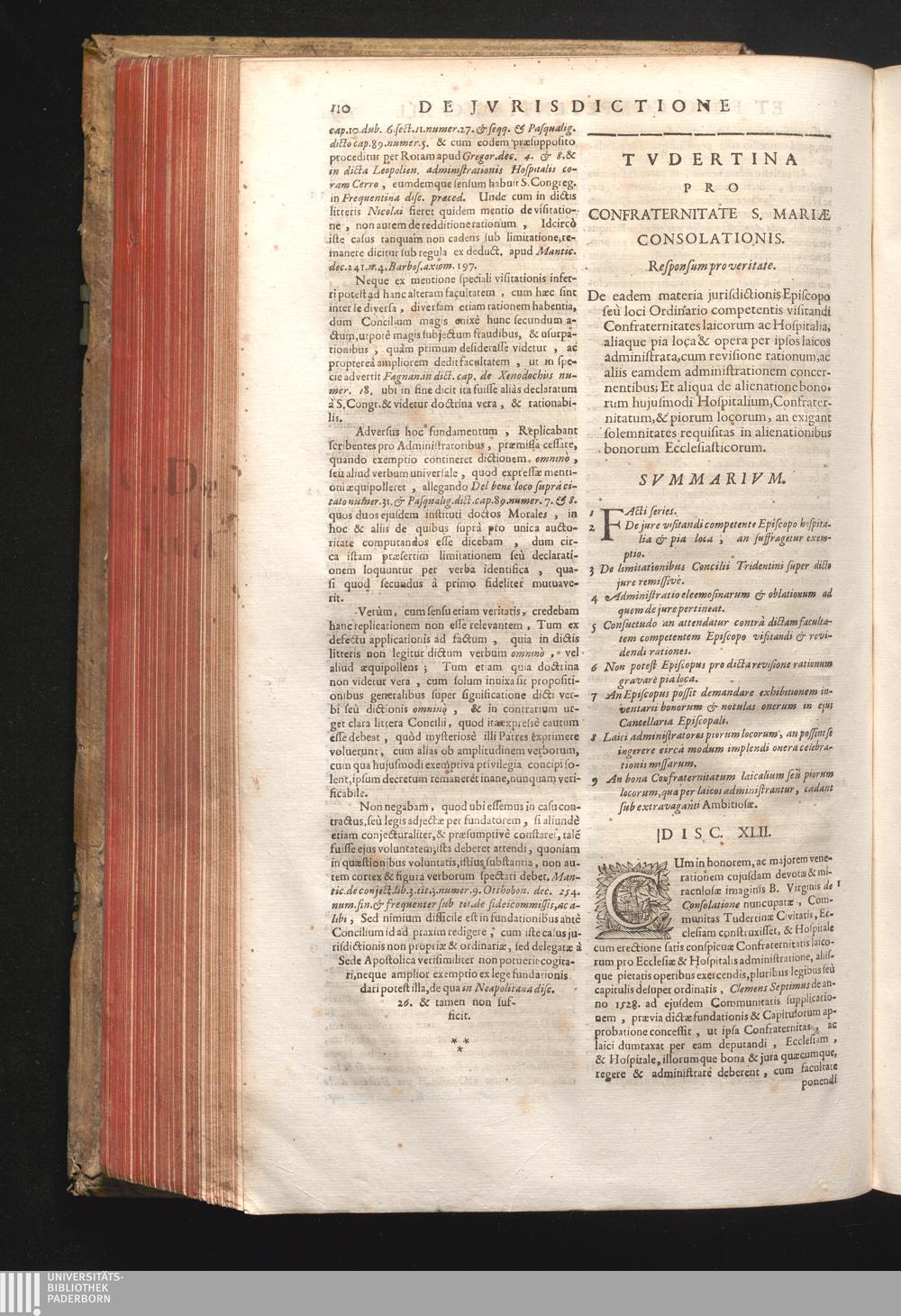 Disc. XLII. Tudertina. De eadem materia jurisdictionis Episcopo, seu loci Ordinario[...]