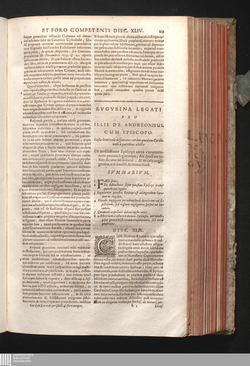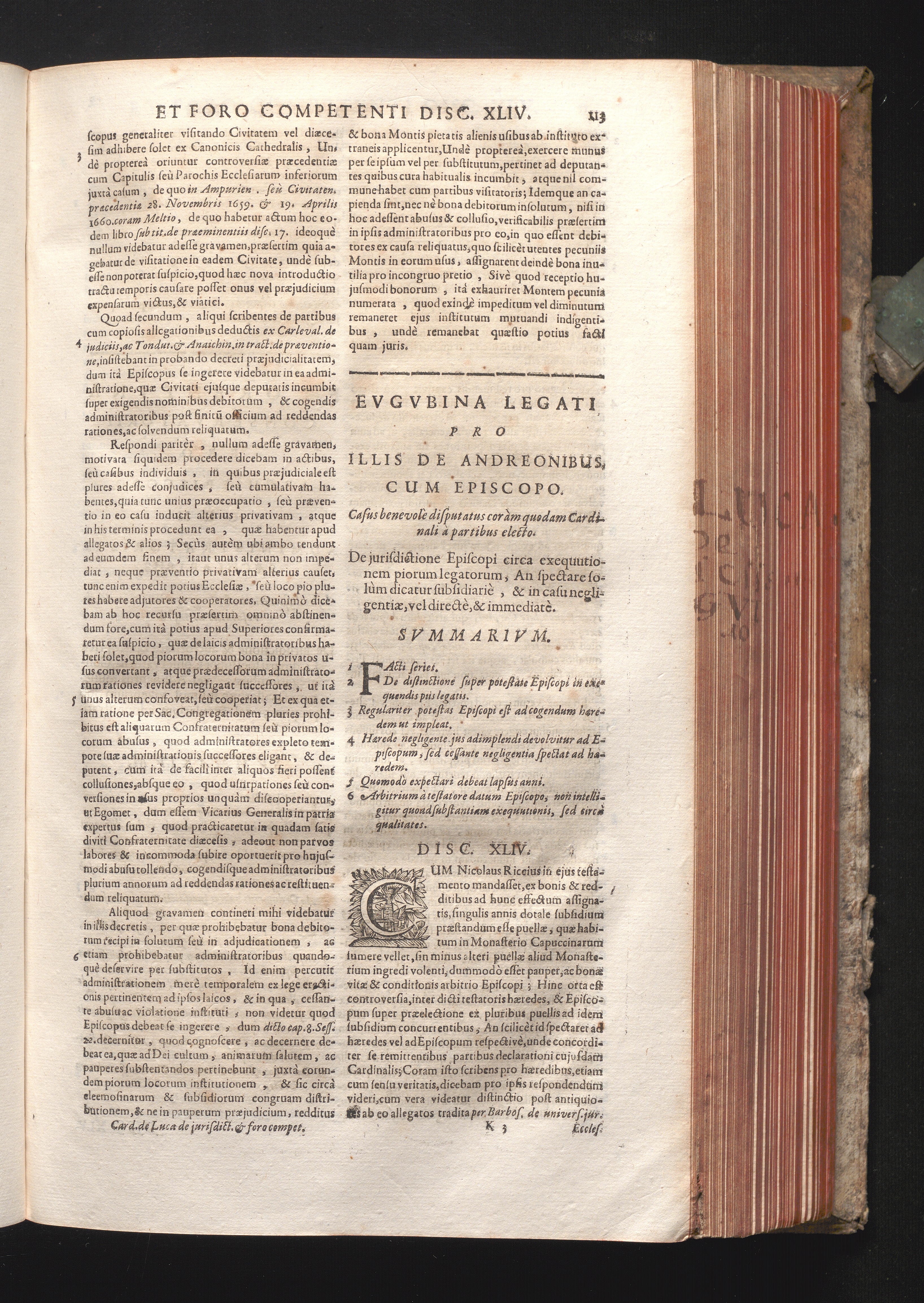 Disc. XLIV. Eugubina Legati. De jurisdictione Episcopi exequutionem piorum legatorum,[...]
