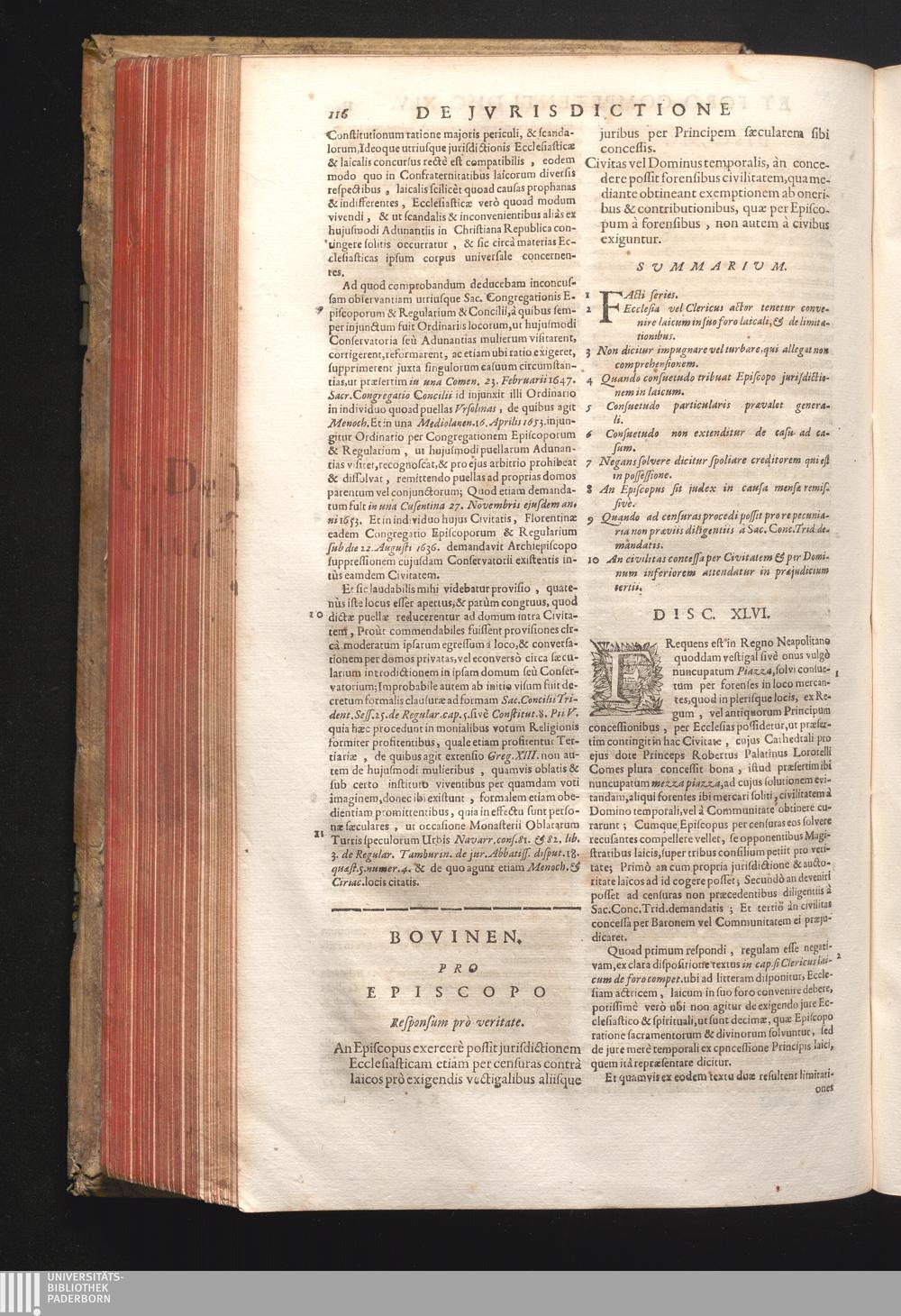 Disc. XLVI. Bovien. An Episcopus exercere possit jurisdictionem Ecclesiasticam etiam[...]