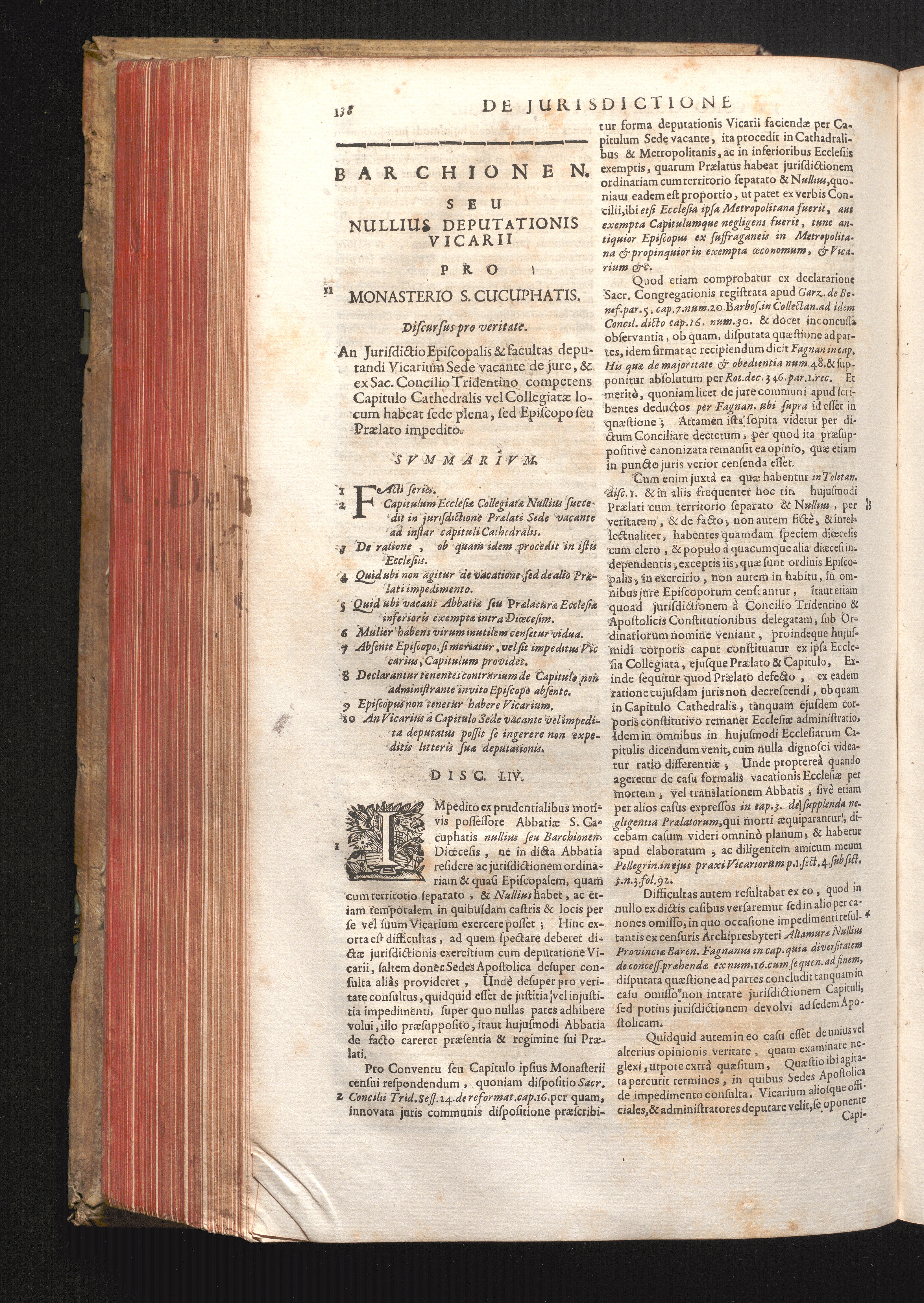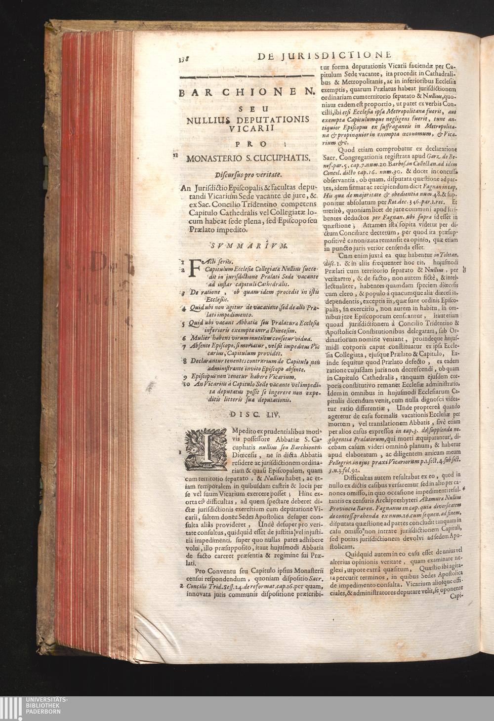 Disc. LIV. Barchionen. seu nullius deputationis Vicarii. An jurisdictio Episcopalis[...]