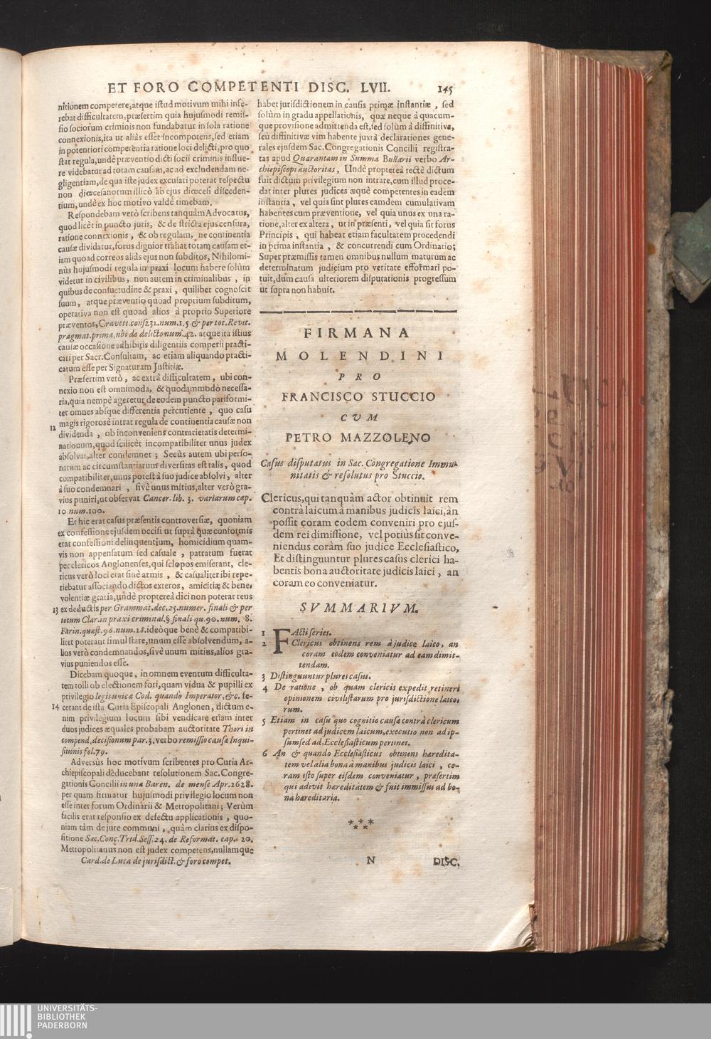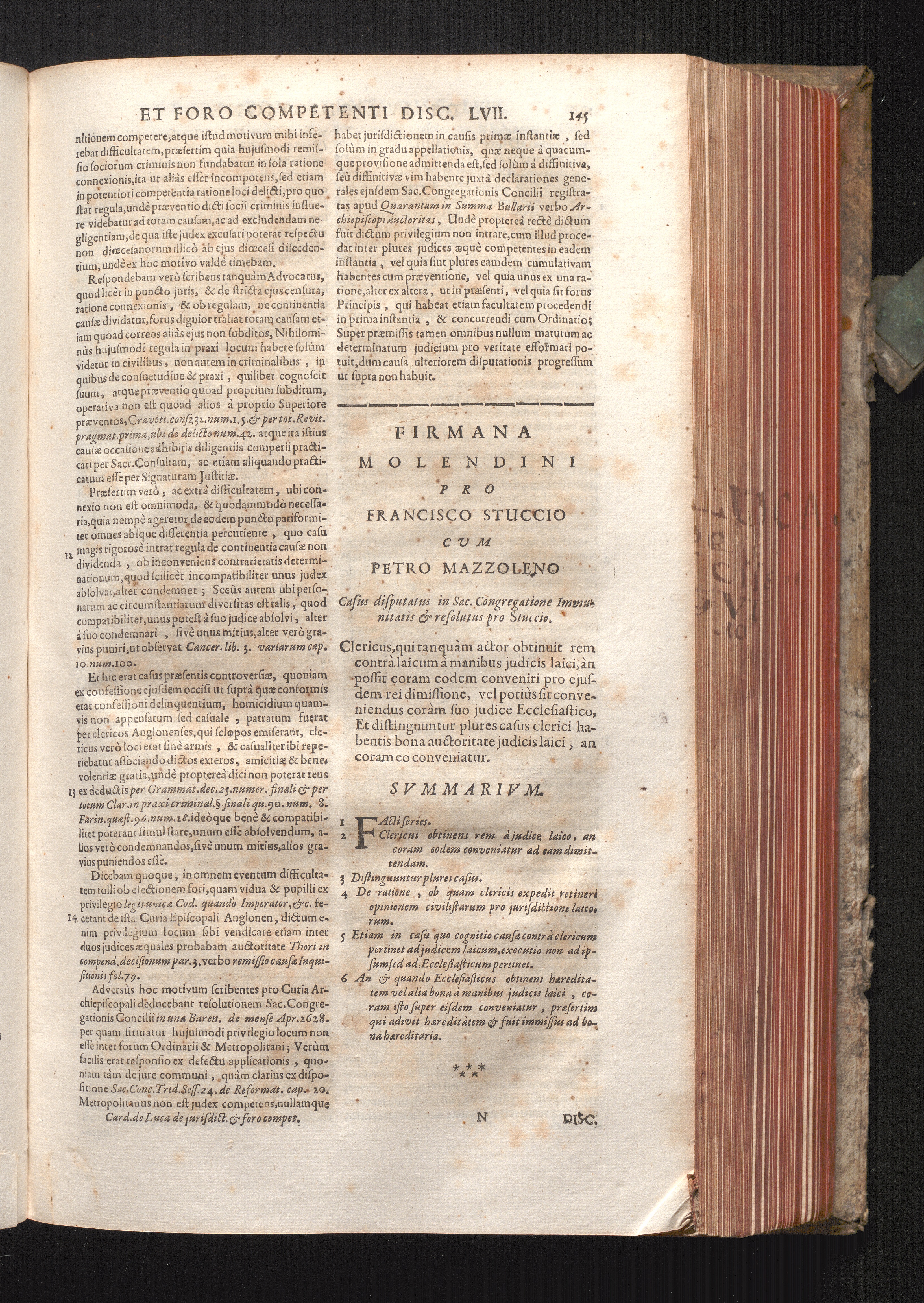 Disc. LVIII. Firmana Molendini. Clericus, qui tanquam actor obtinuit rem contrà laicum[...]