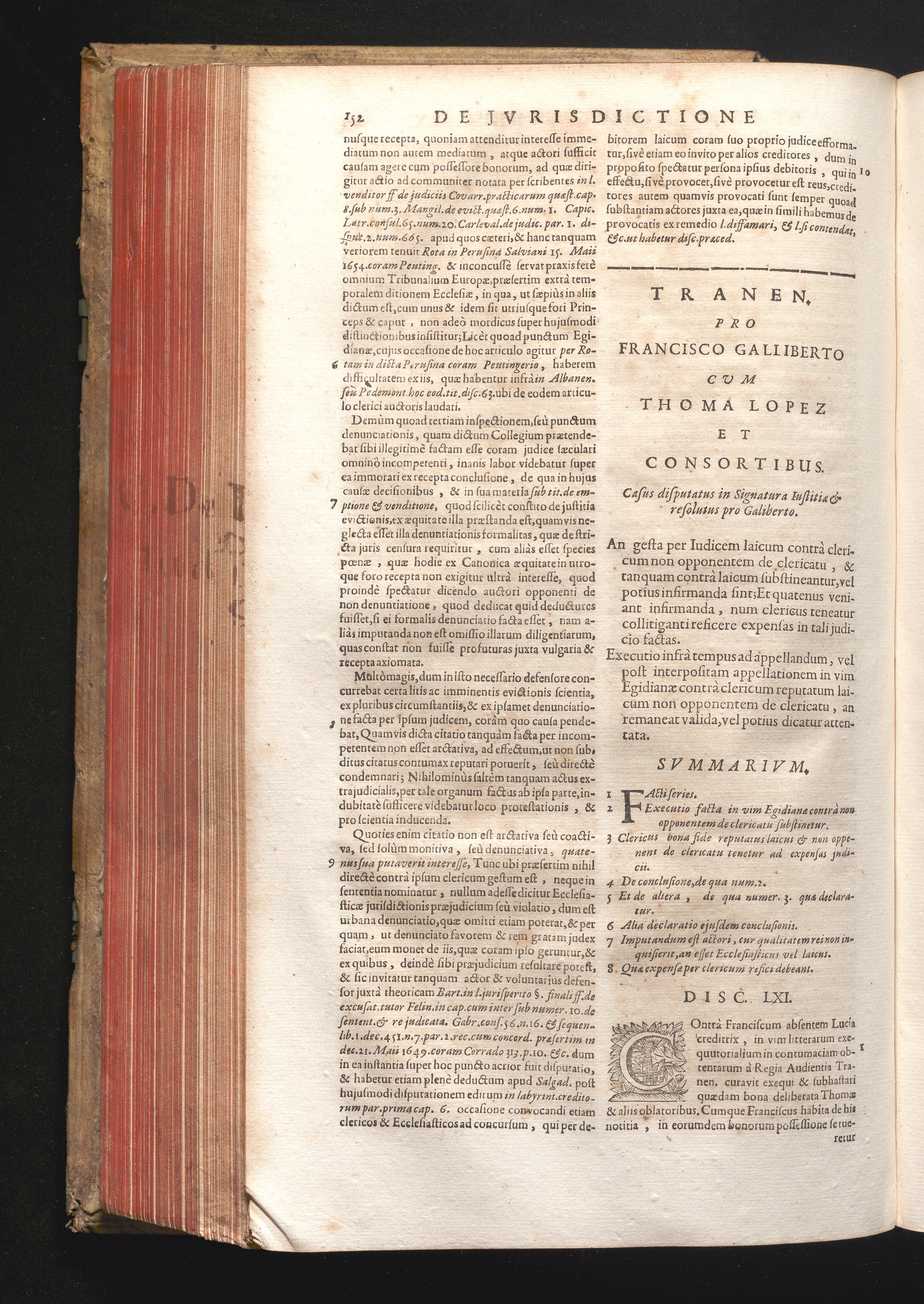 Disc. LXI. Tranen. An gesta per Judicem laicum contrà clericum non opponentem de[...]