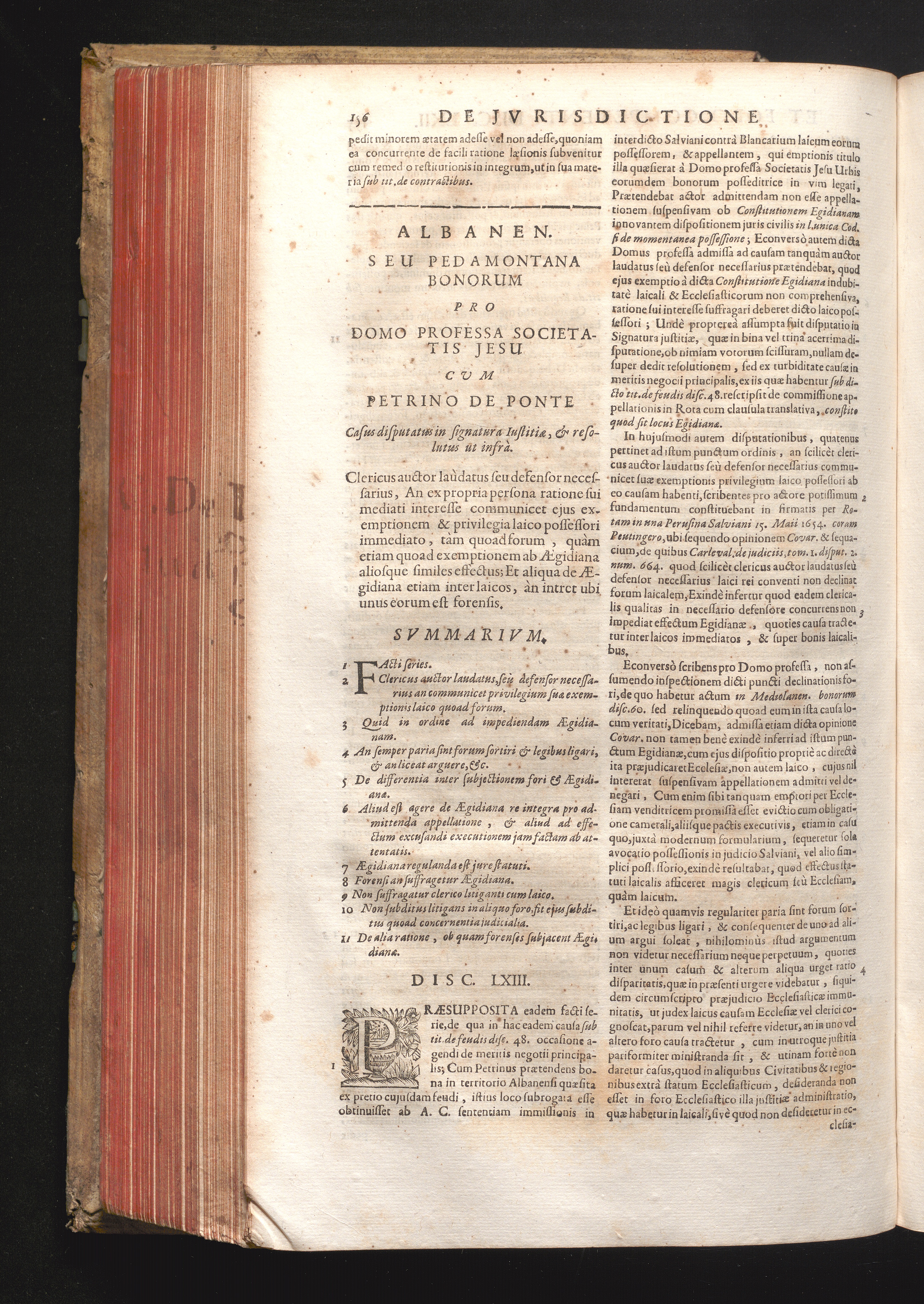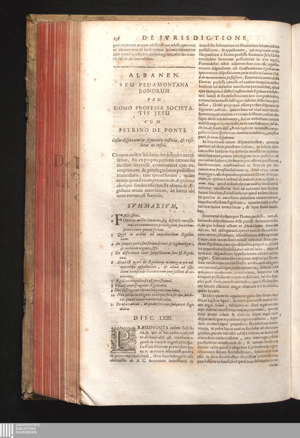 Disc. LXIII. Albanen. seu Pedemontana bonorum. Clericus auctor laudatus, seu defensor[...]