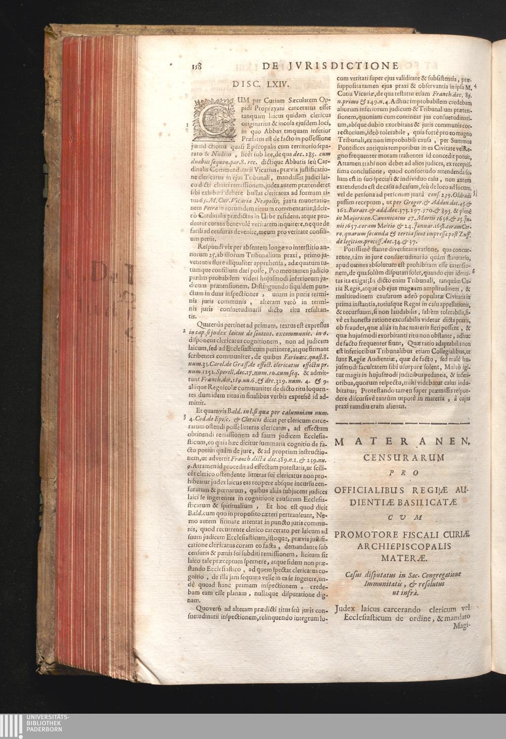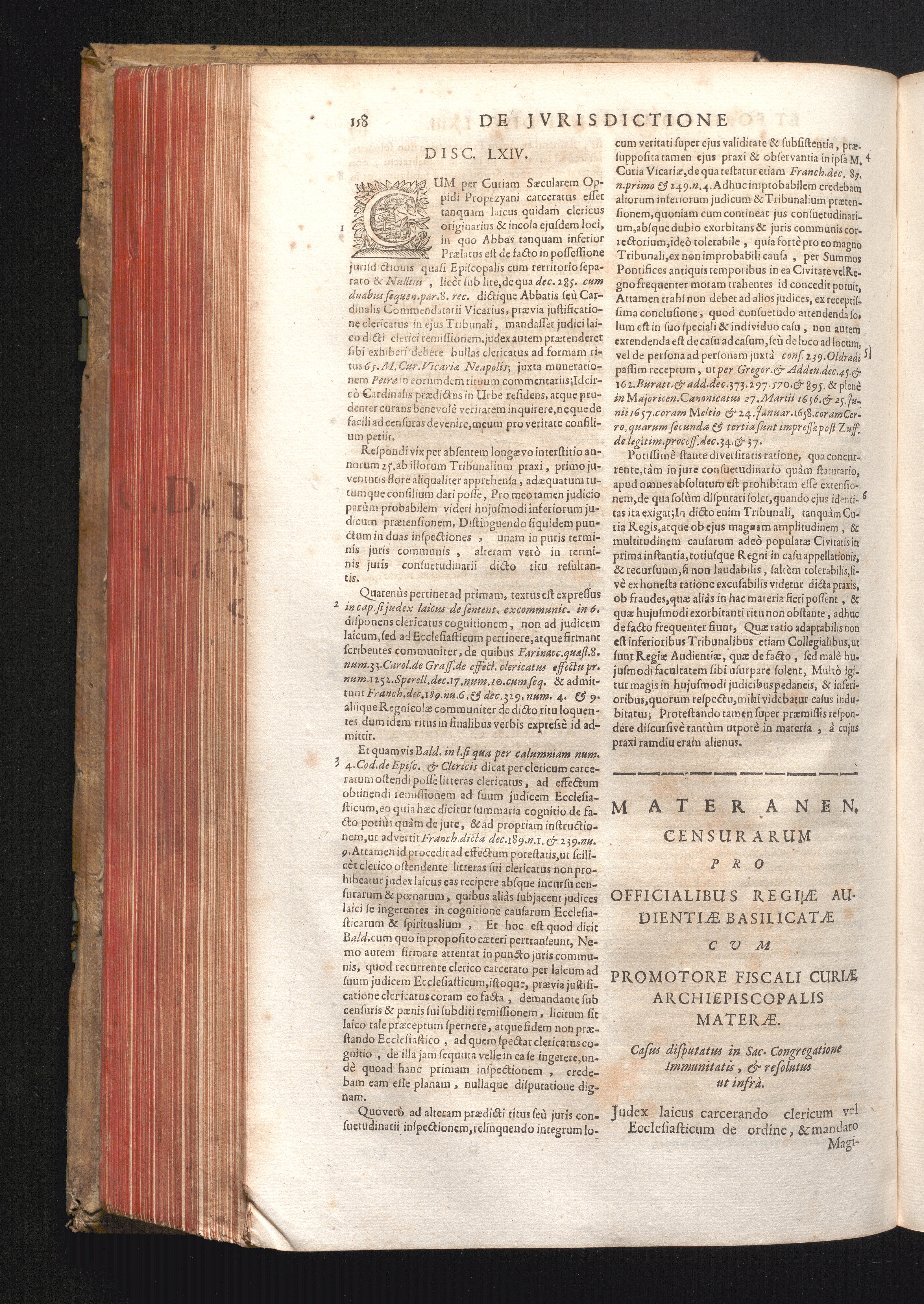 Disc. LXV. Materan. Censuram. Judex laicus carcerando clericum vel Ecclesiasticum[...]