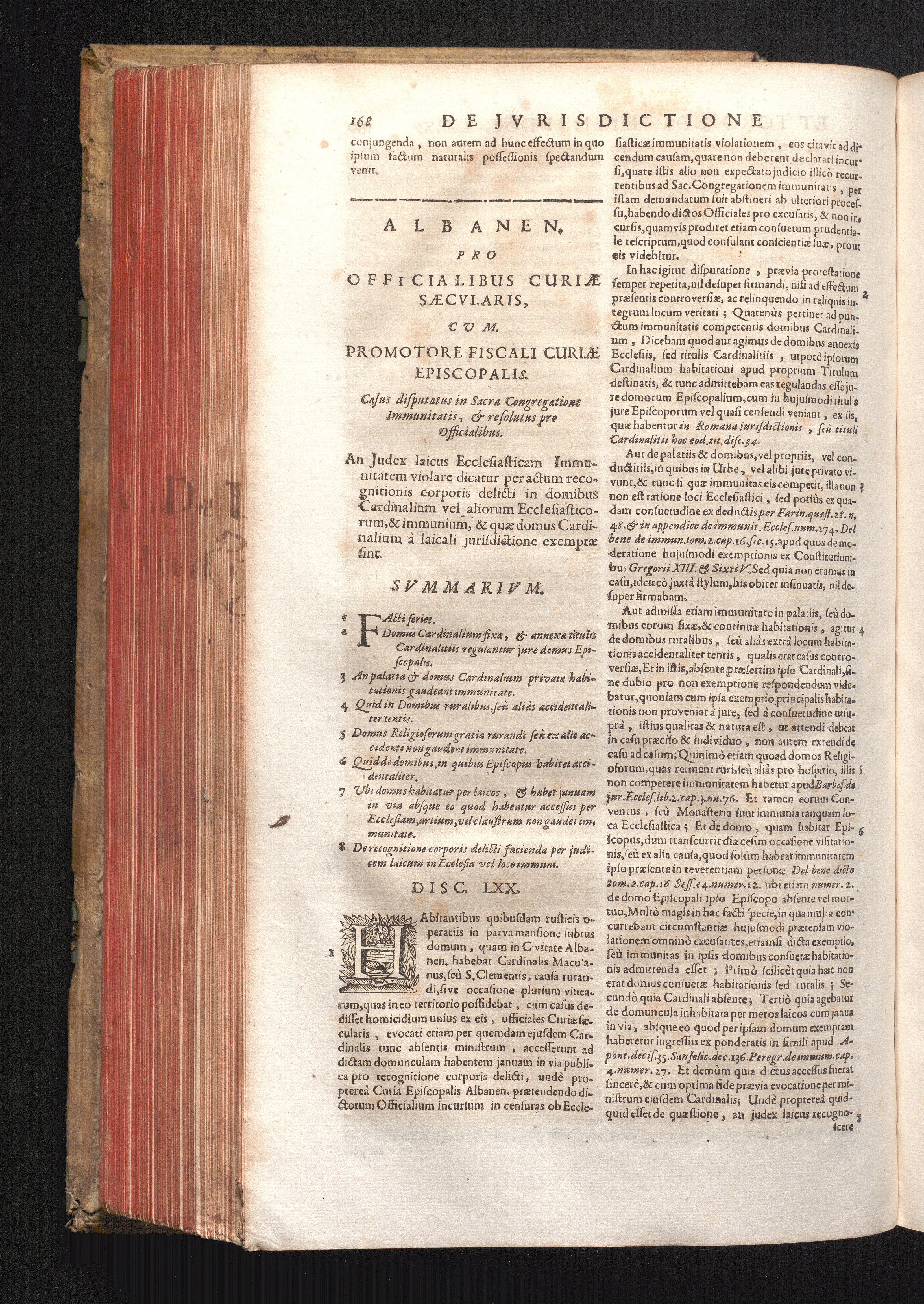Disc. LXX. Albanen. An Judex laicus Ecclesiastica[m] Immunitatem violare dicatur[...]