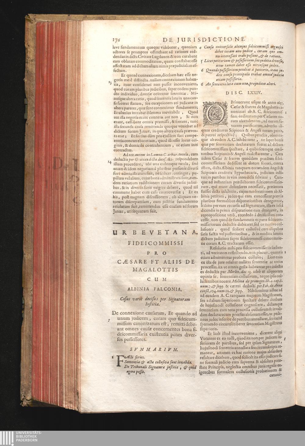 Disc. LXXIV. Urbevetana fideicommissi. De connexione causarum, Et quando ad unum[...]