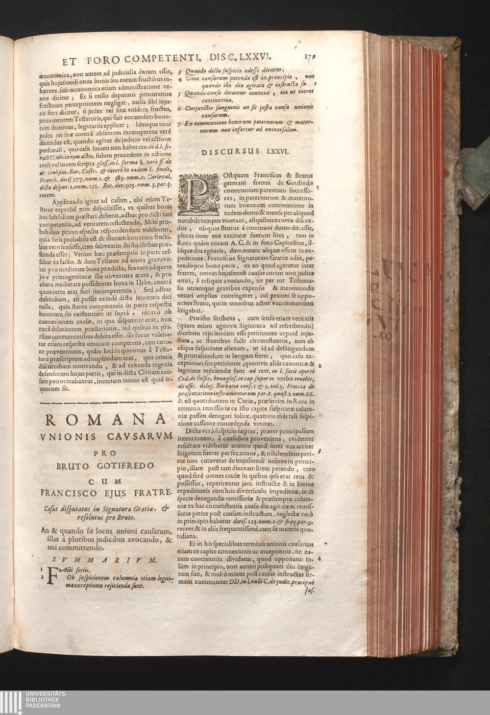 Disc. LXXVI. Romana unionis causarum. An & quando sit locus unioni causarum, illas[...]