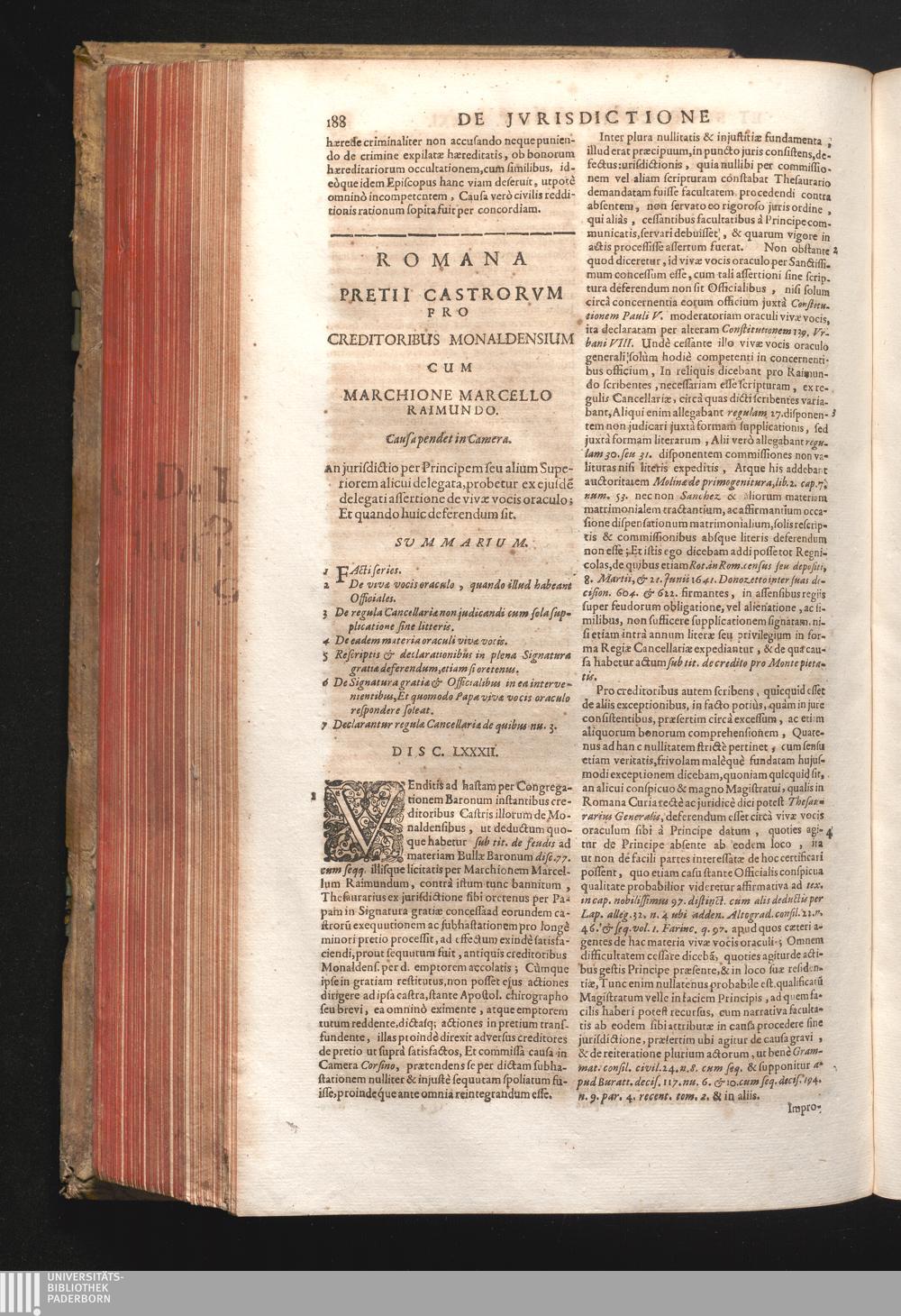 Disc. LXXXII. Romana pretii Castrorum. An jurisdictio per Principem seu alium superiorem[...]