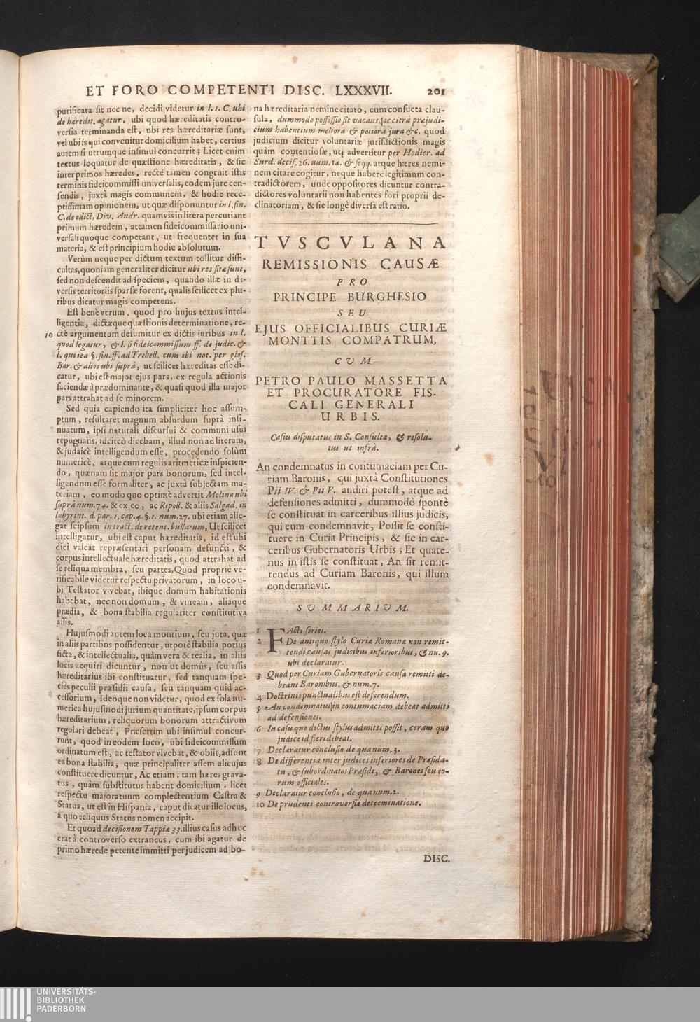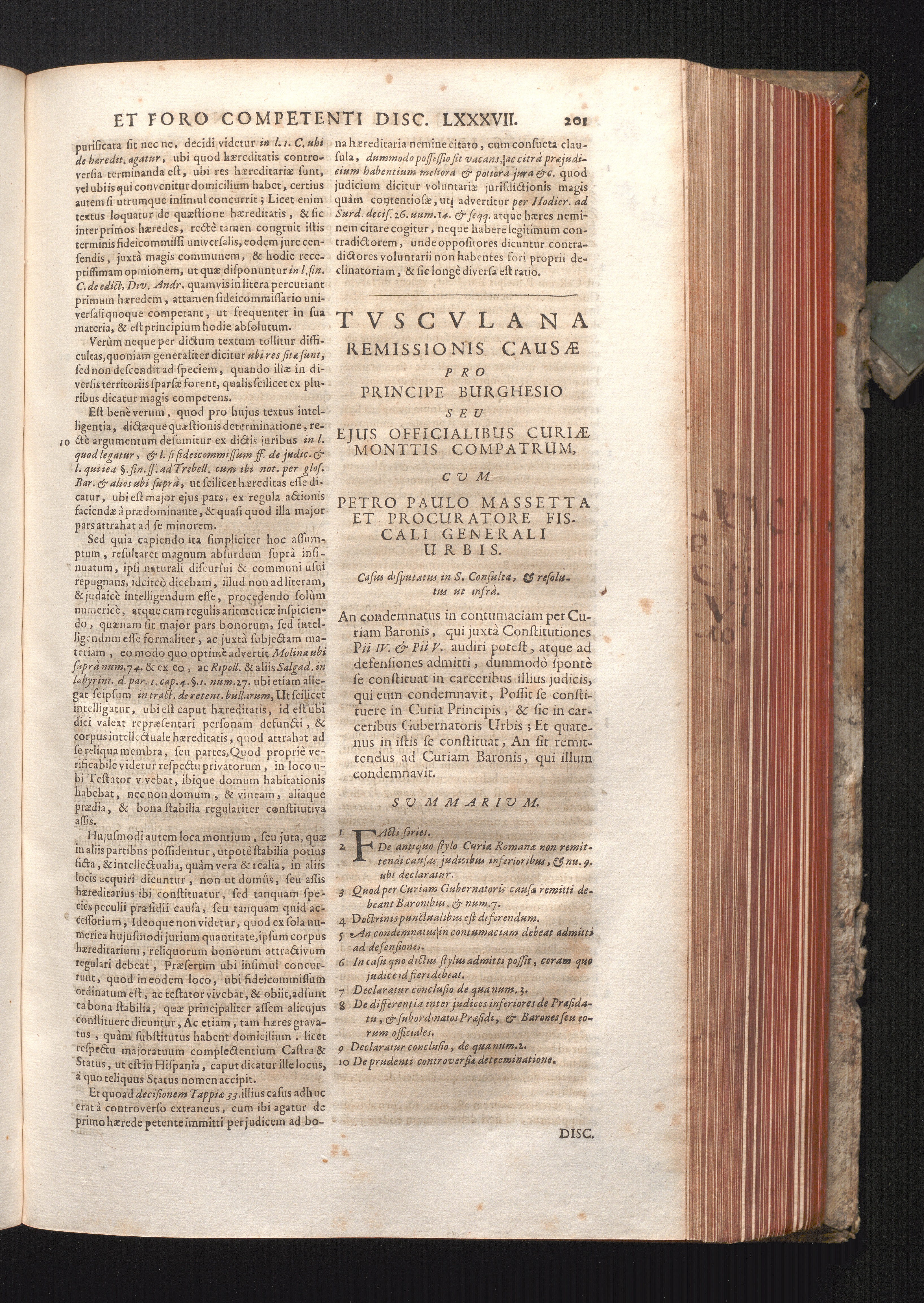 Disc. LXXXVIII. Tusculana remissionis causæ. An condemnatus in contumaciam per Curiam[...]