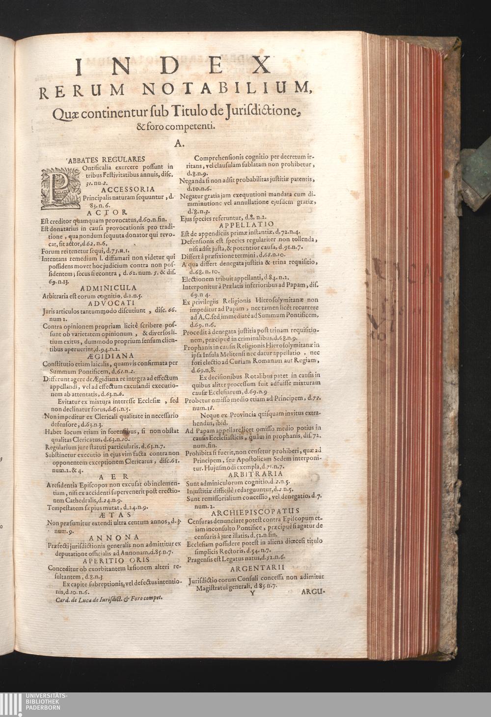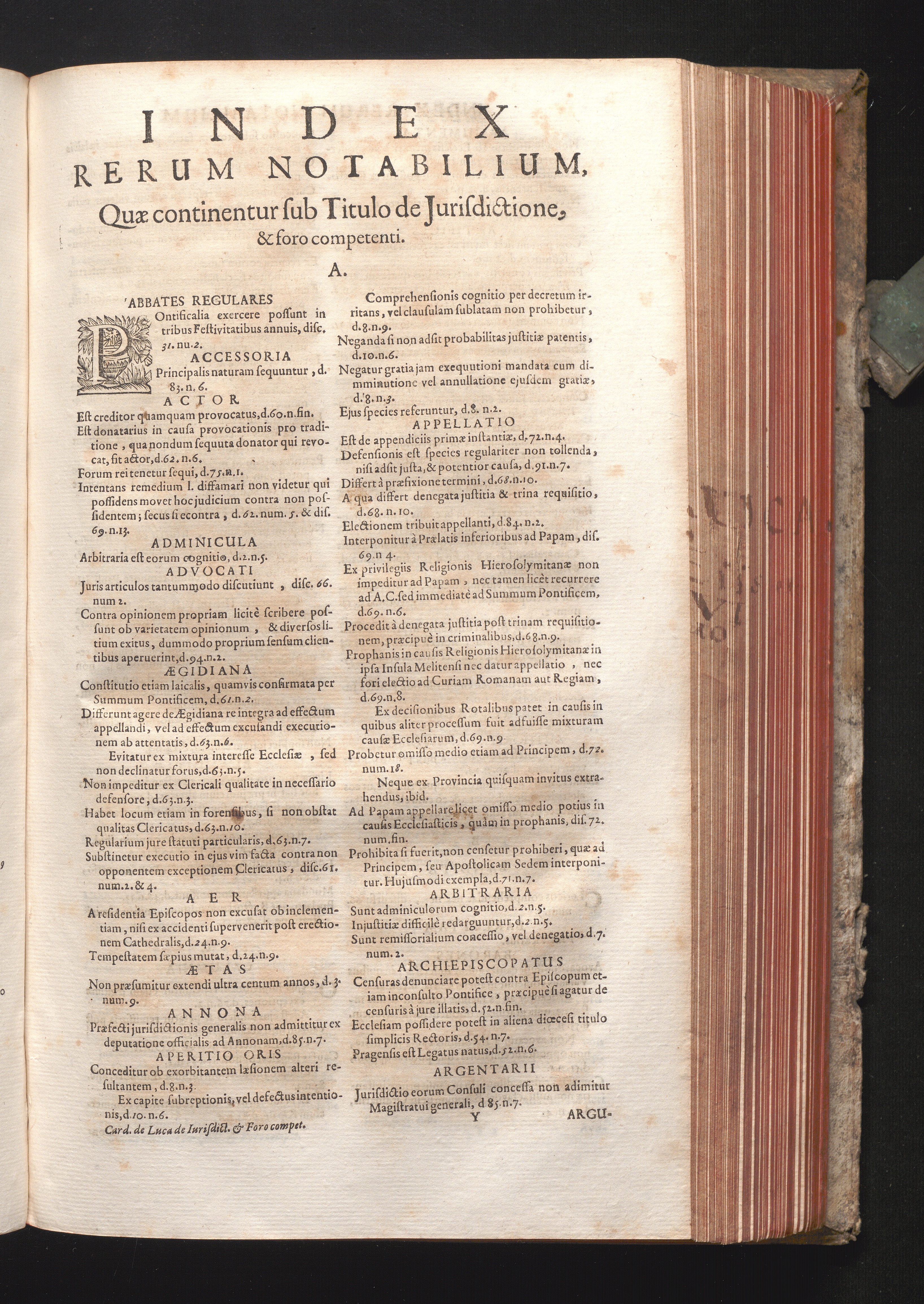 Index Rerum Notabilium, Quæ continentur sub Titulo de Jurisdictione & foro compe[...]