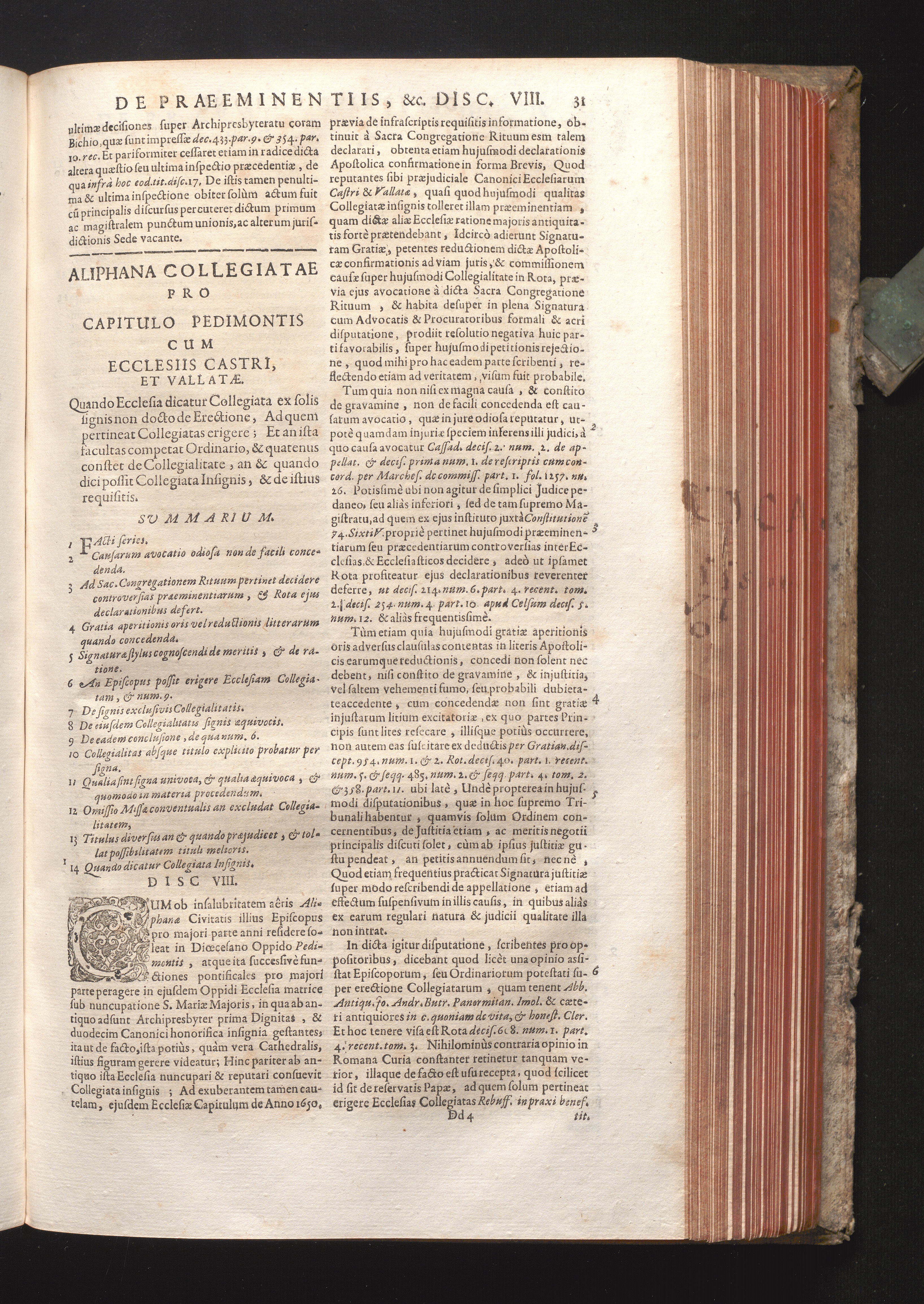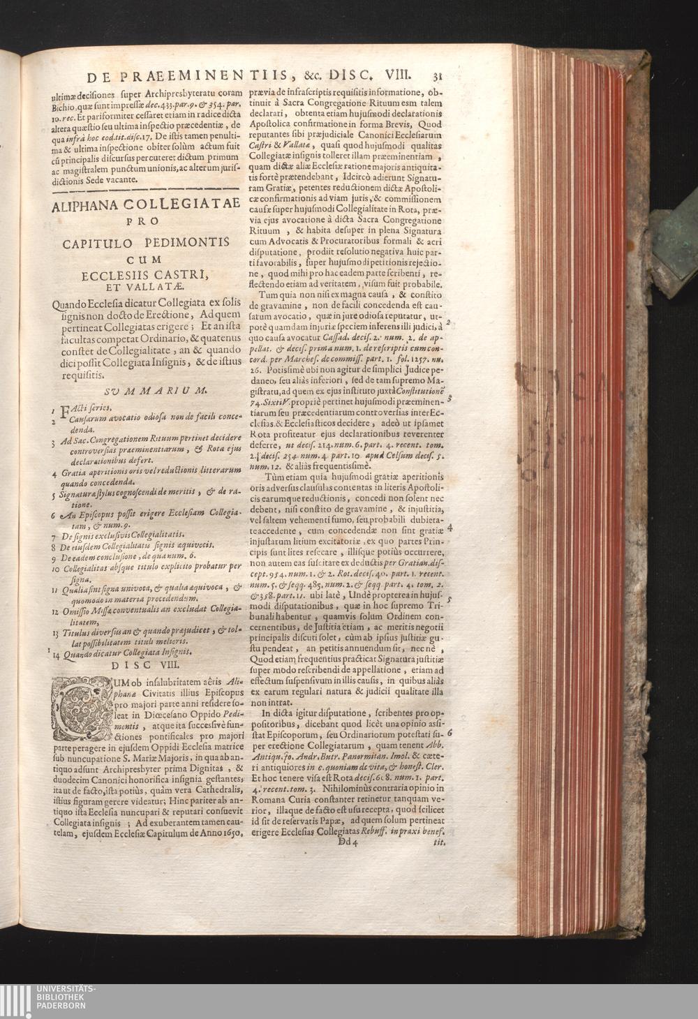 Disc. VIII. Aliphana Collegiatae. Quando Ecclesia dicatur Collegiata ex solis signis[...]