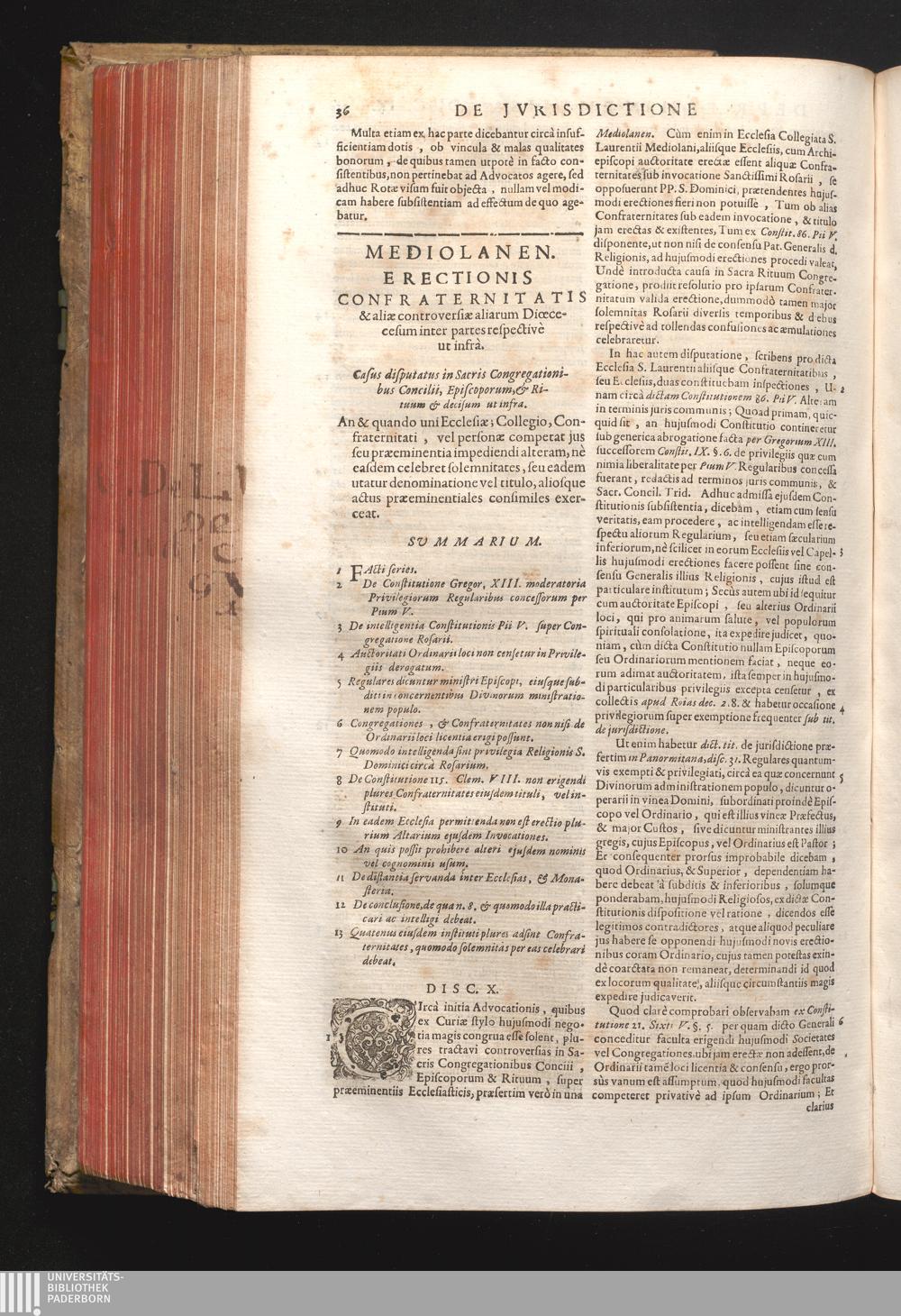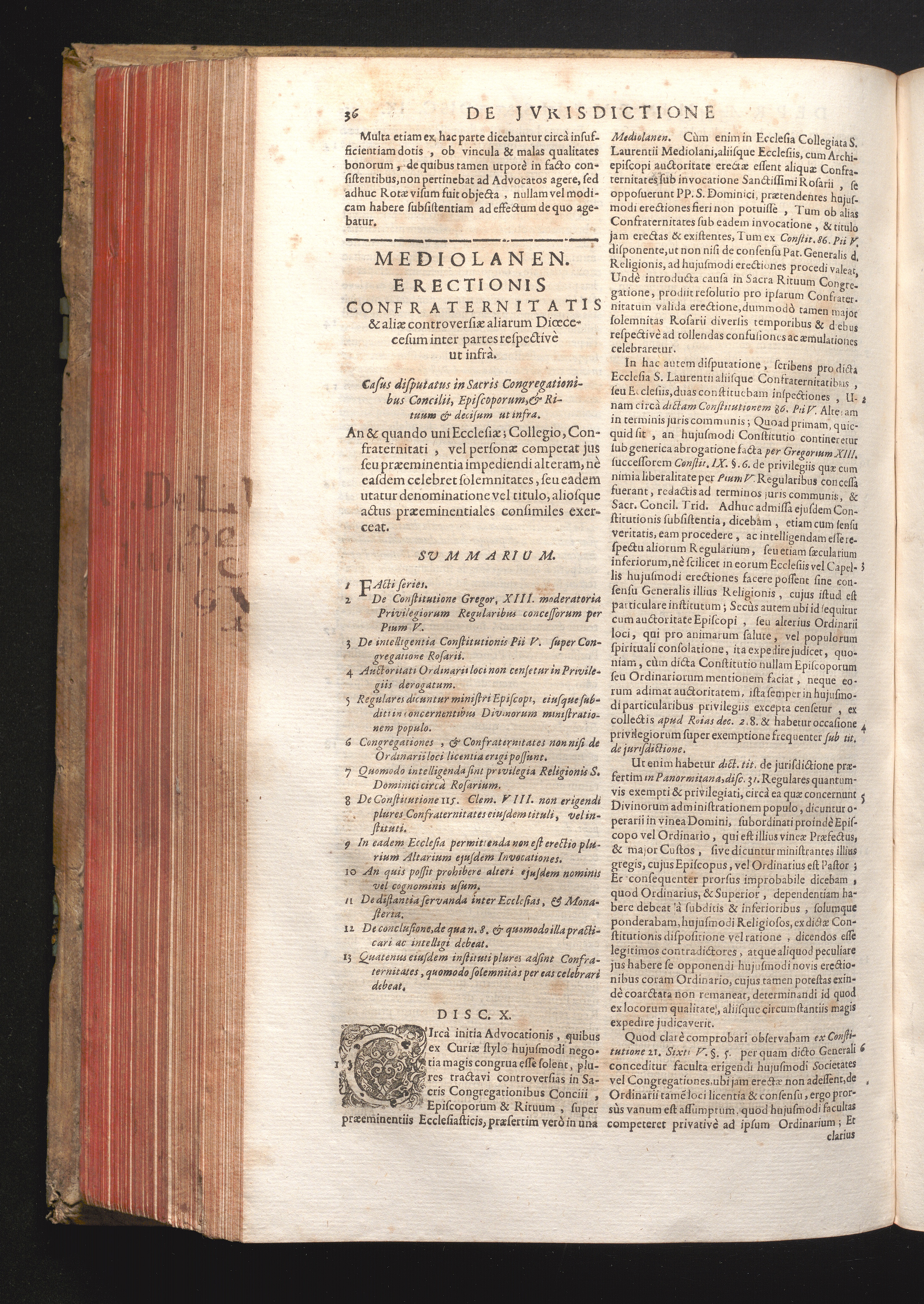 Disc. X. Mediolanen. Erectionis Confraternitatis. An & quando uni Ecclesiæ; Collegio,[...]