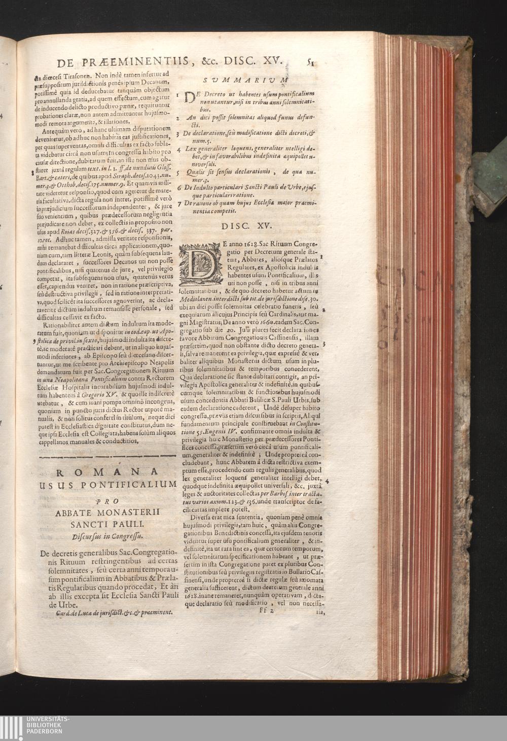 Disc. XV. Romana Usus Pontificalium. De decretis generalibus Sac. Congregationis[...]