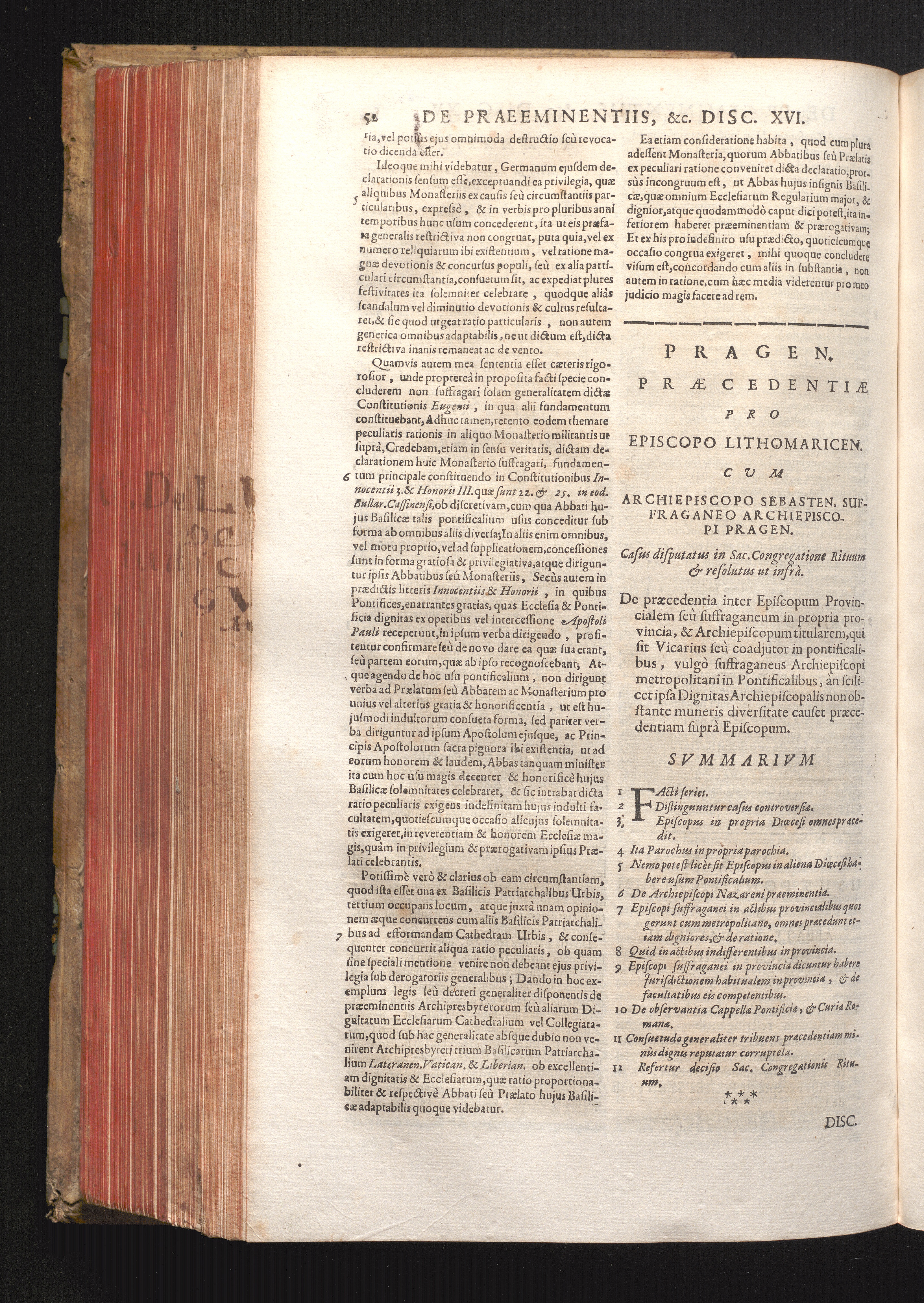 Disc. XVI. Pragen. Præcedentiæ. De præcedentia inter Episcopum Provincialem seù suffraganeum[...]