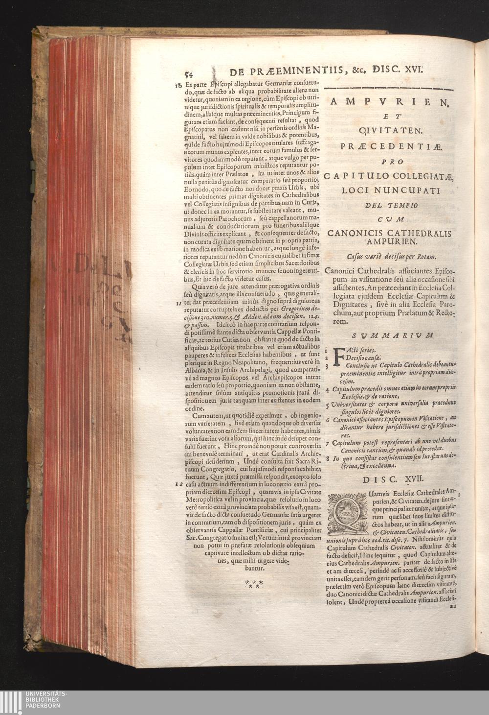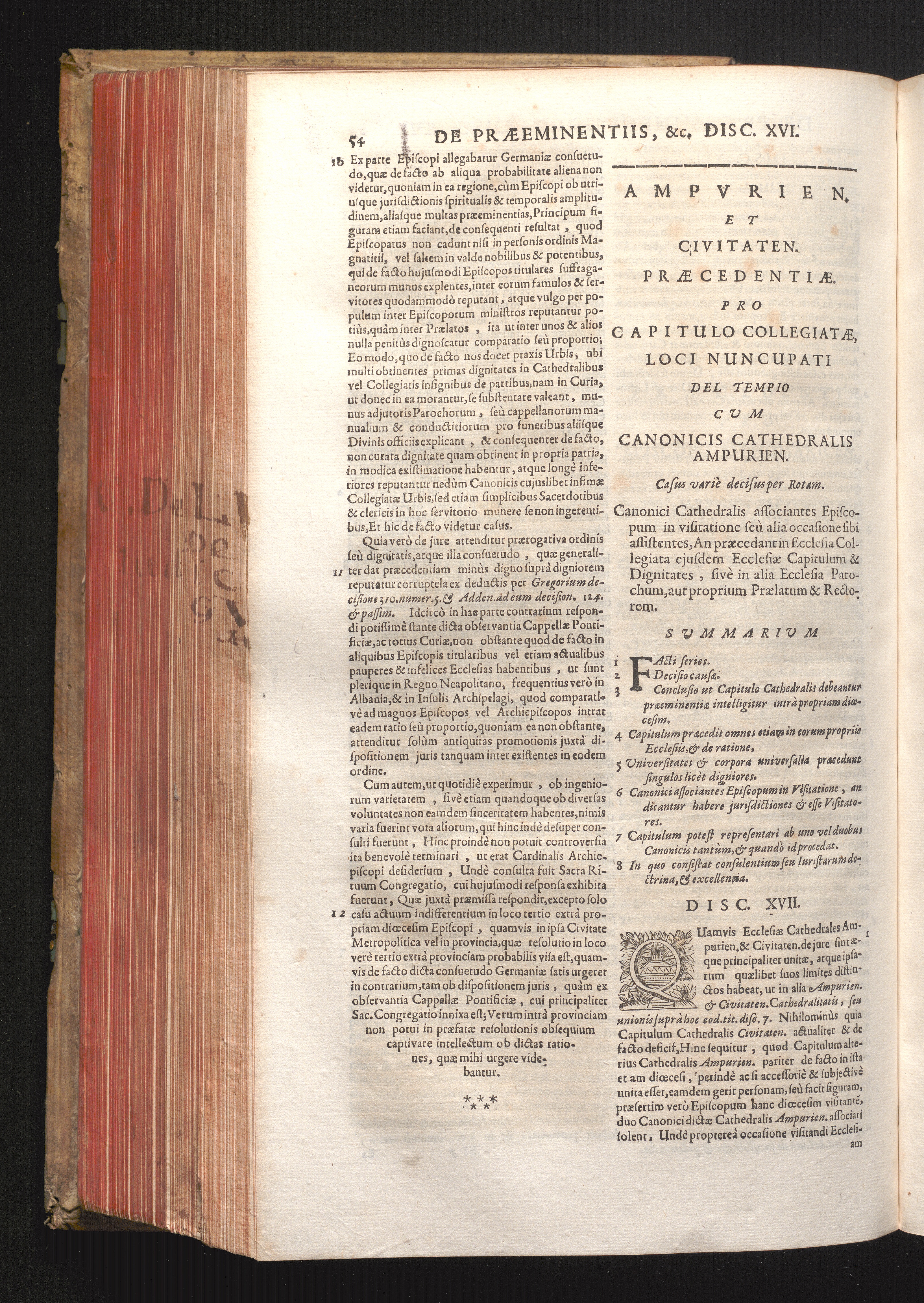 Disc. XVII. Ampurien. Et Civitaten. Præcedentiæ. Canonici Casthedralis associantes[...]