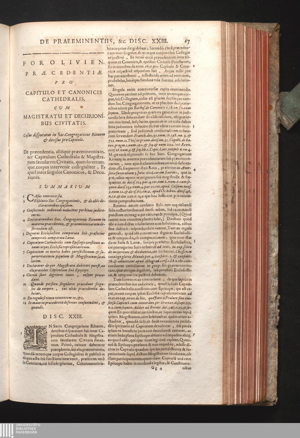 Disc. XXIII. Forolivien. Præcedentiæ. De præcedentia, aliisque præeminentiis inter[...]