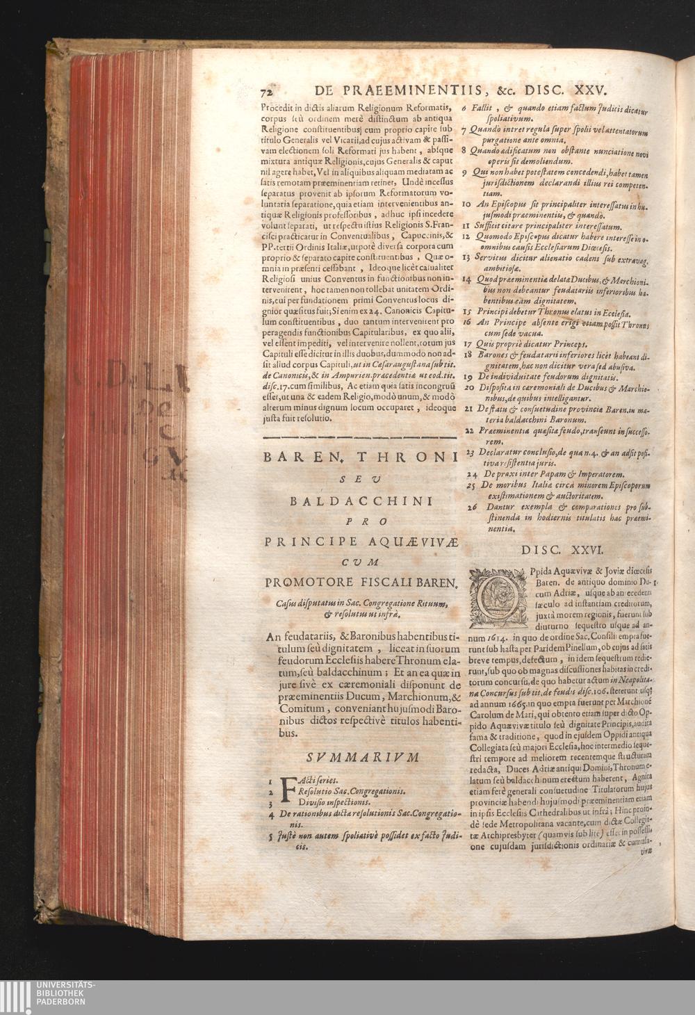 Disc. XXVI. Baren. Throni Seu Baldacchini. An feudatariis, & Baronibus habentibus[...]