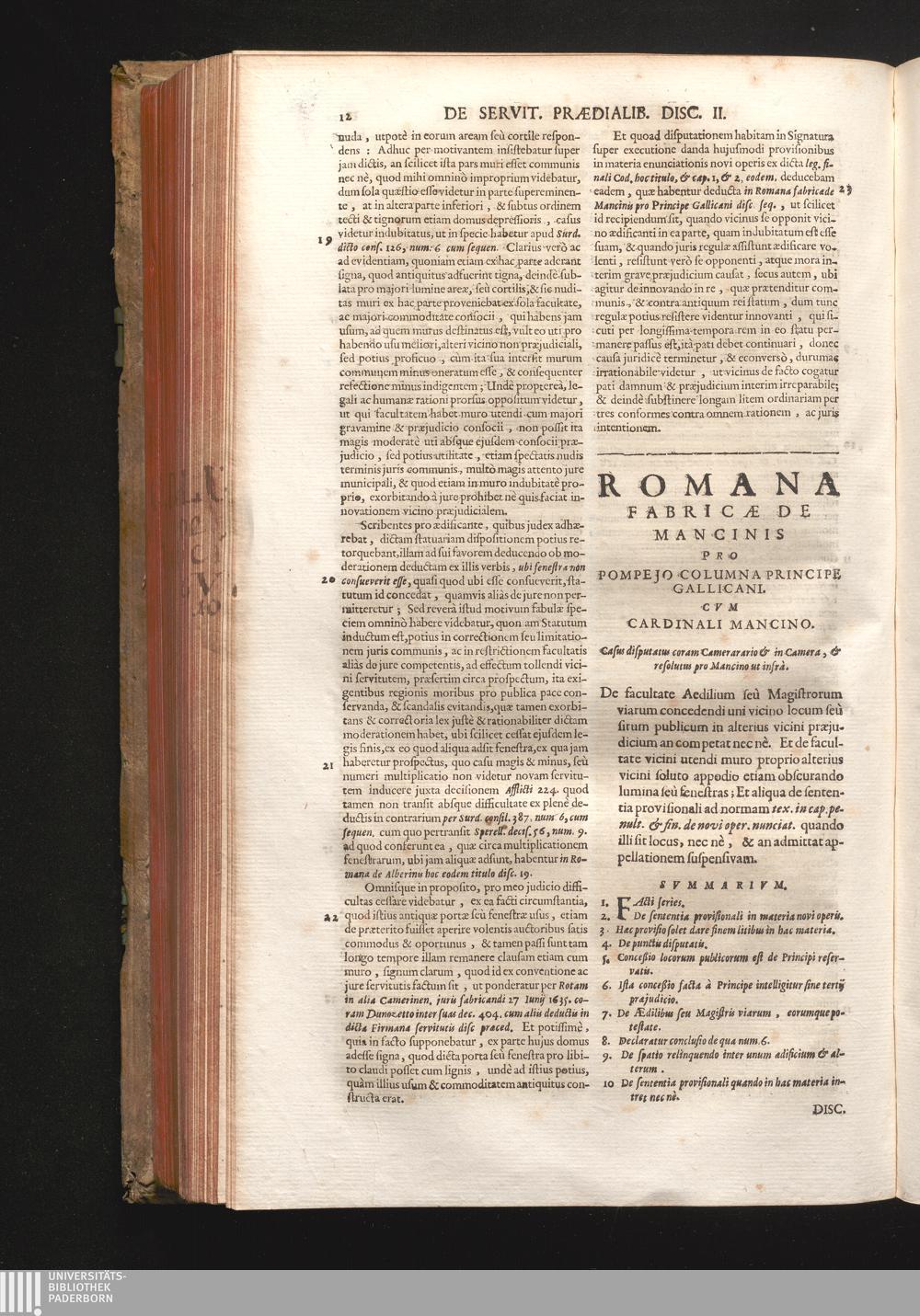 Disc. V. Romana fabricæ de Mancinis. De facultate Ædilium, seu Magistrorum viarum[...]