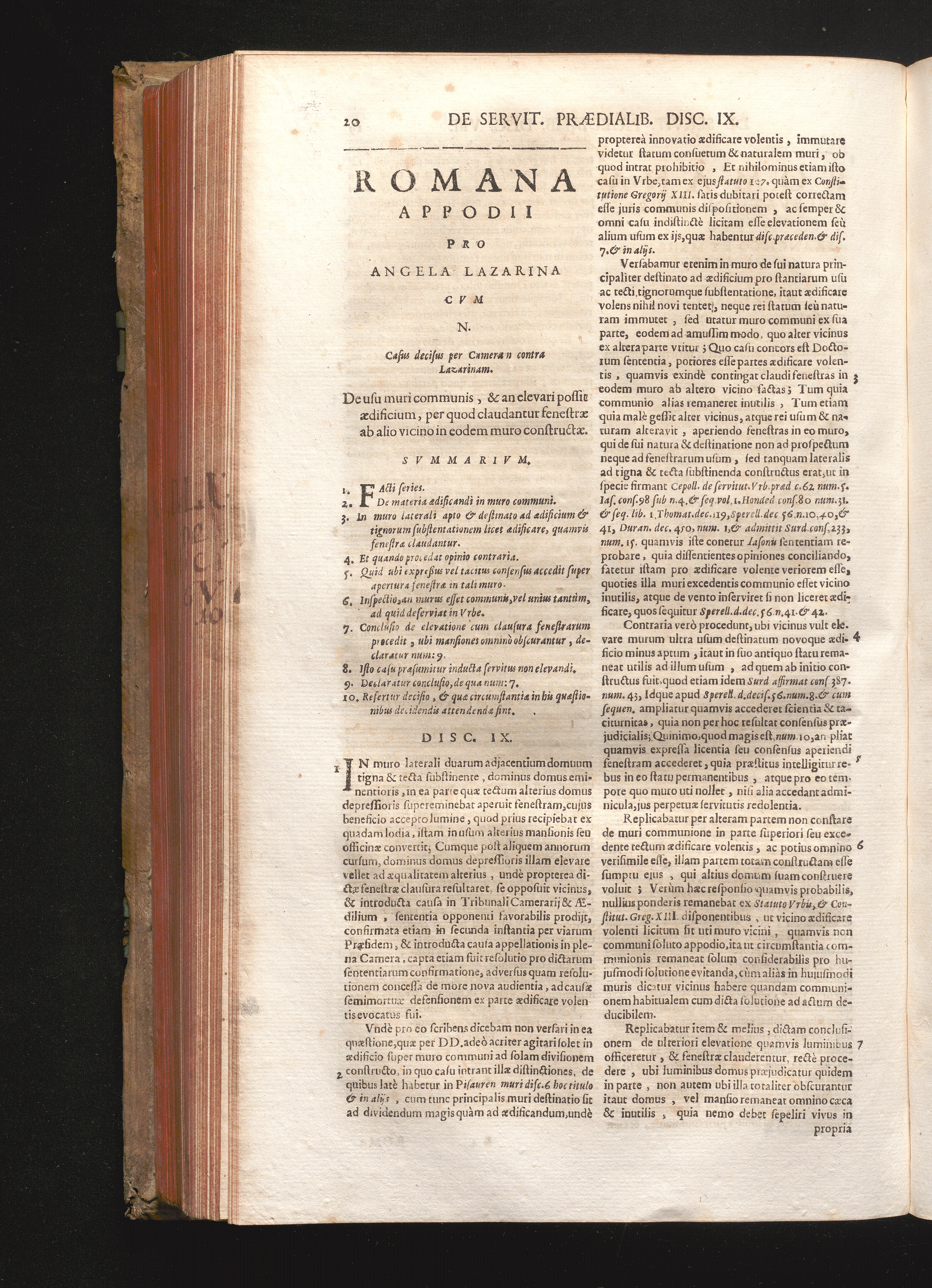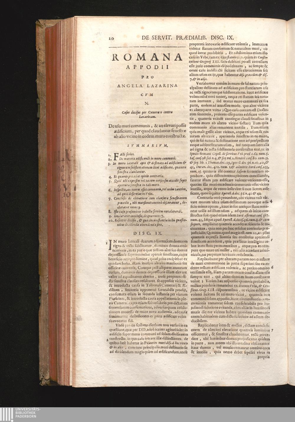 Disc. IX. Romana appodii. De usu muri communis, & an elevari possit ædificium, per[...]