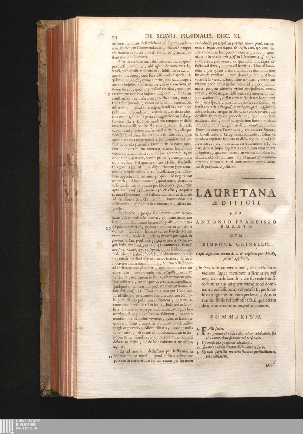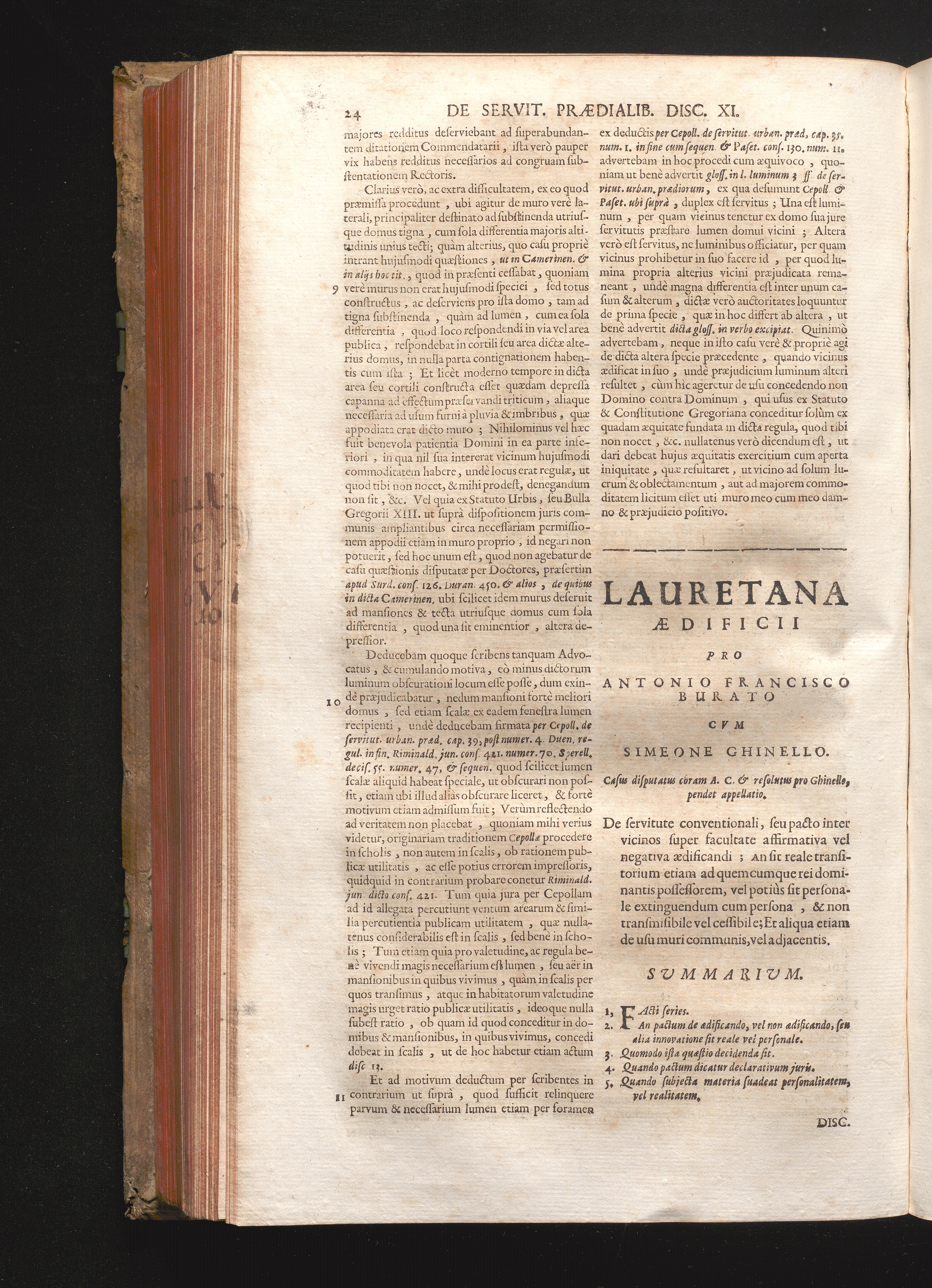 Disc. XII. Lauretana ædificii. De Servitute conventionali, seu pacto inter vicinos[...]