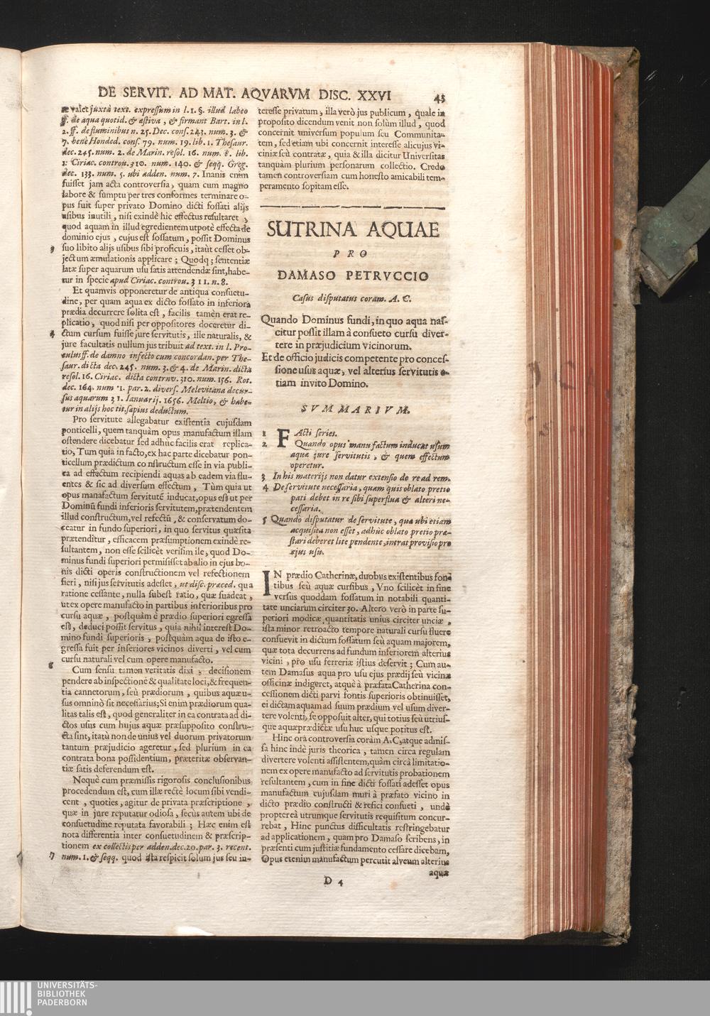 Disc. XXVII. Sutrina Aquæ. Quando Dominus fundi, in quo aqua nascitur possit illam[...]