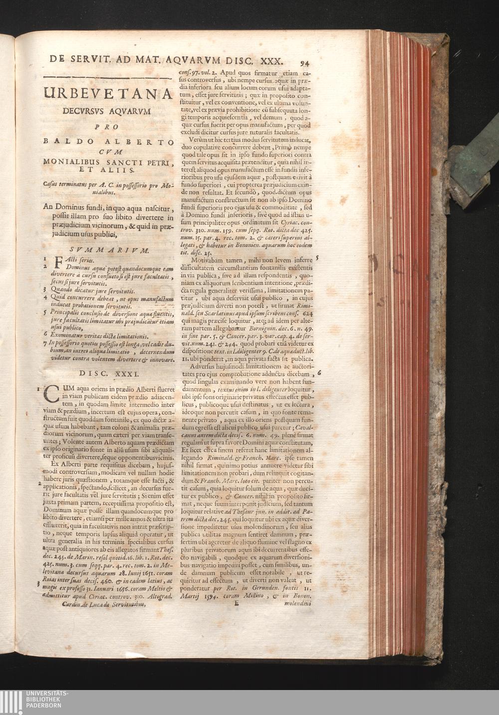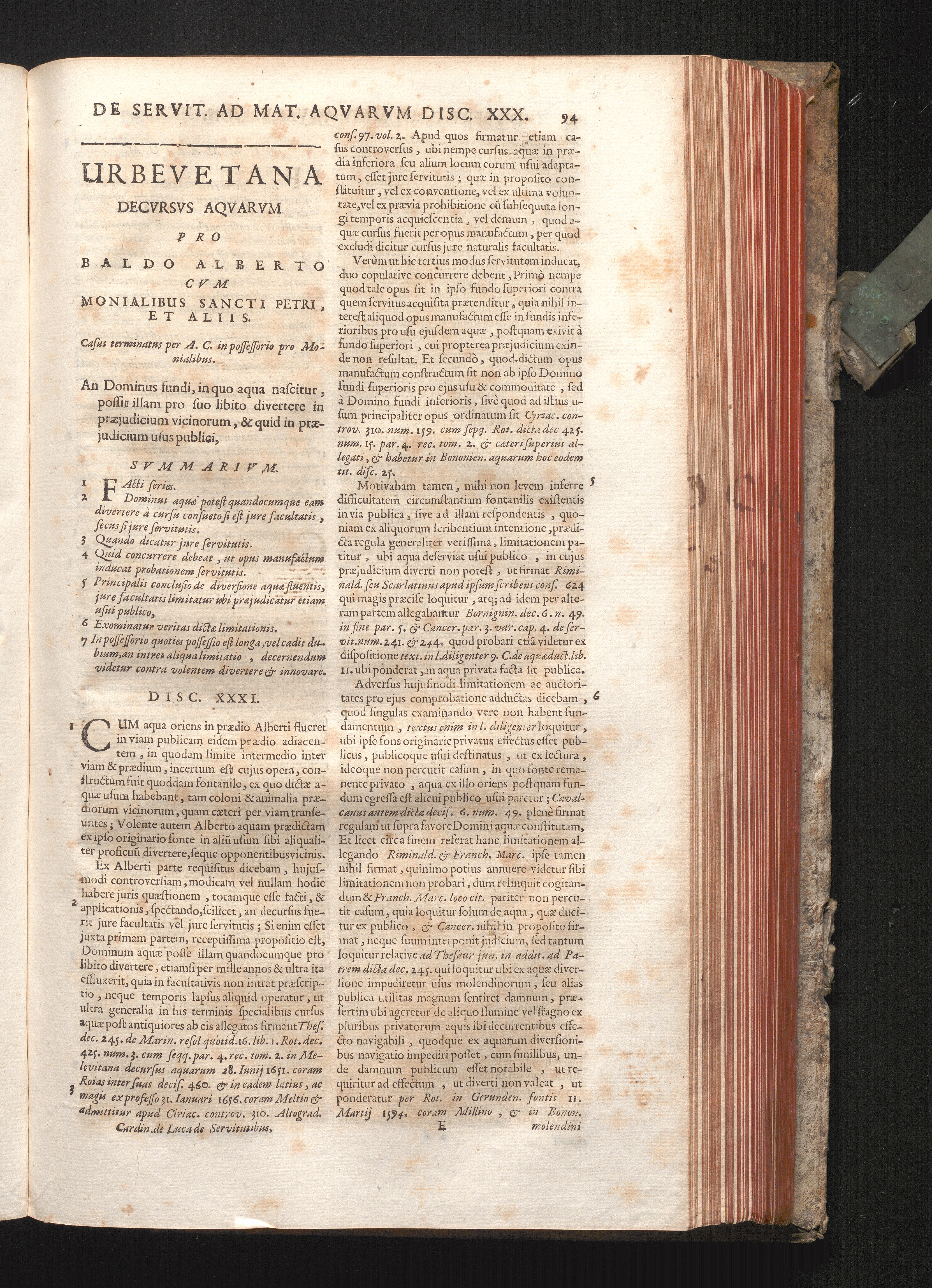 Disc. XXXI. Urbevetana decursus Aquarum. An Dominus fundi, in quo aqua nascitur,[...]