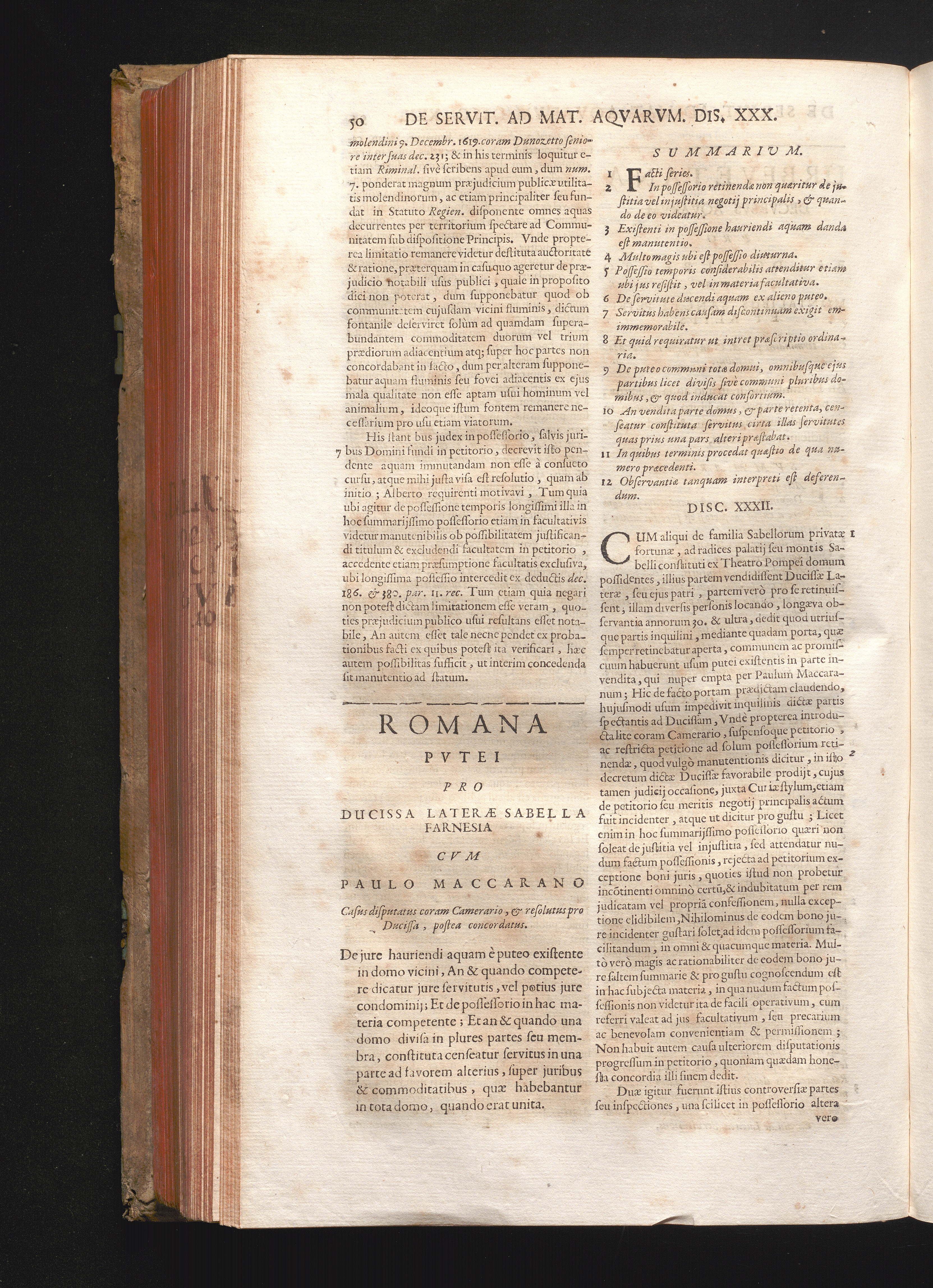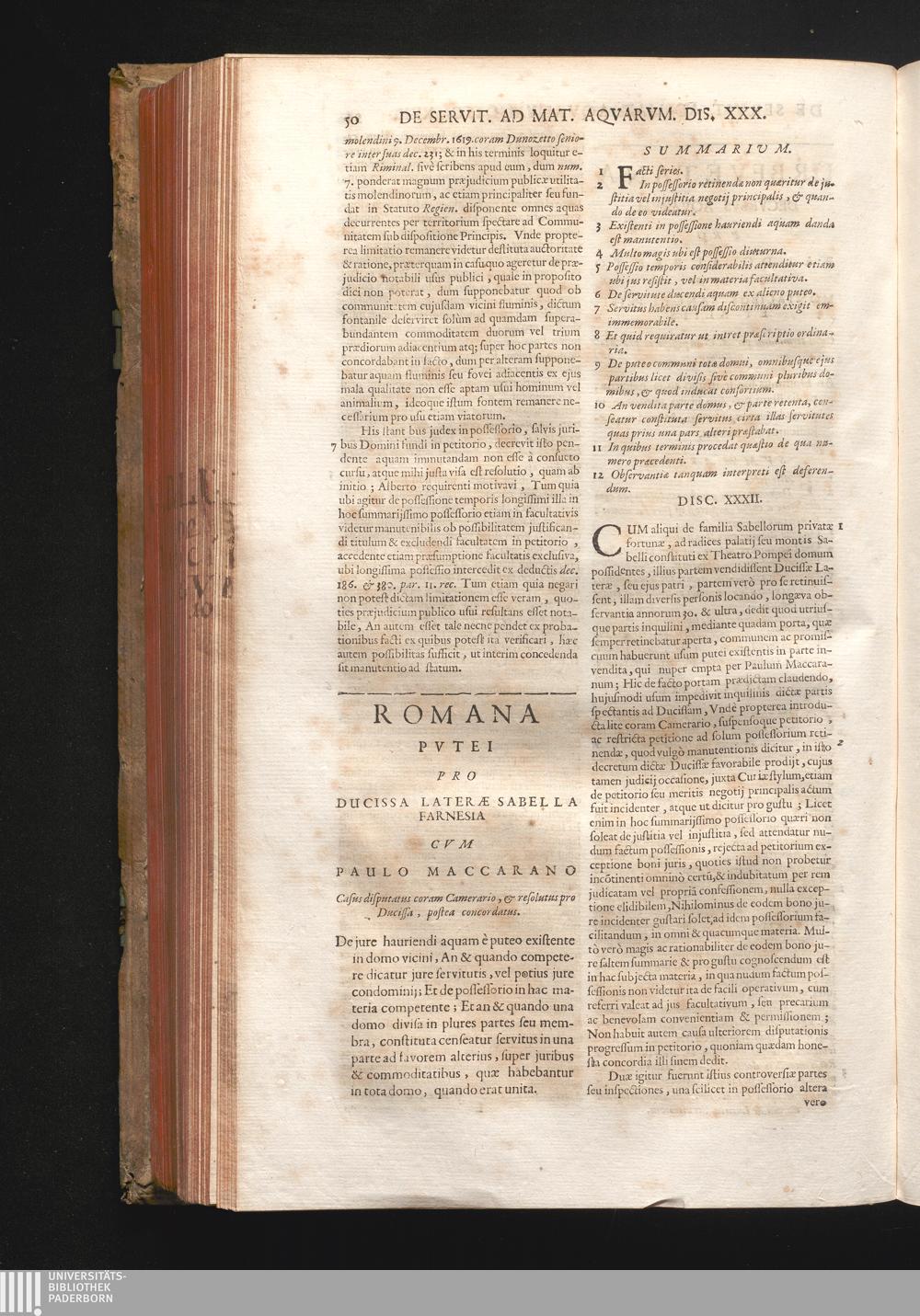 Disc. XXXII. Romana Putei. De jure hauriendi aquam à puteo existente in domo vicini,[...]