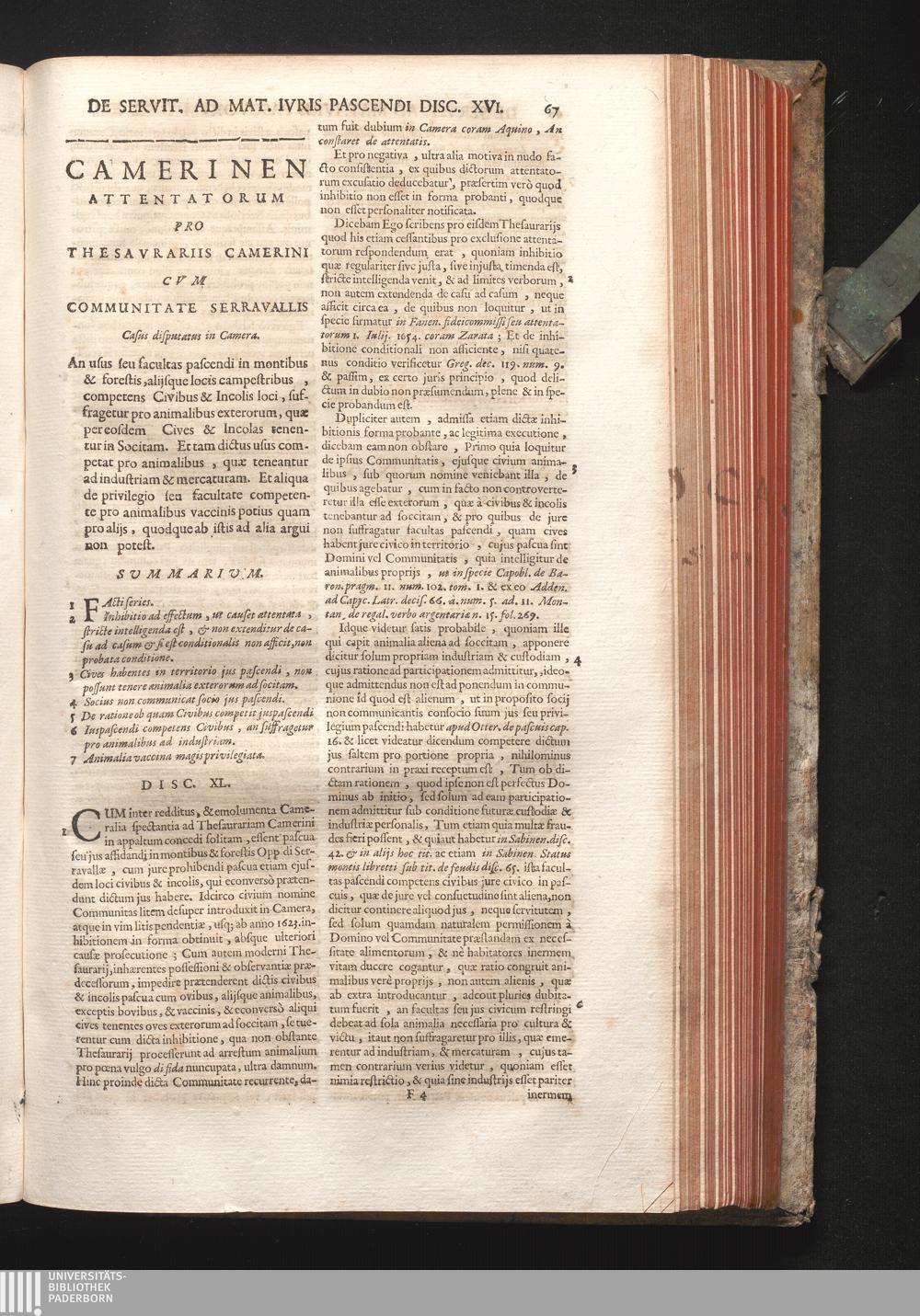 Disc. XL. Camerinen. Attentatorum. An usus seu facultas pascendi in montibus & forestis,[...]