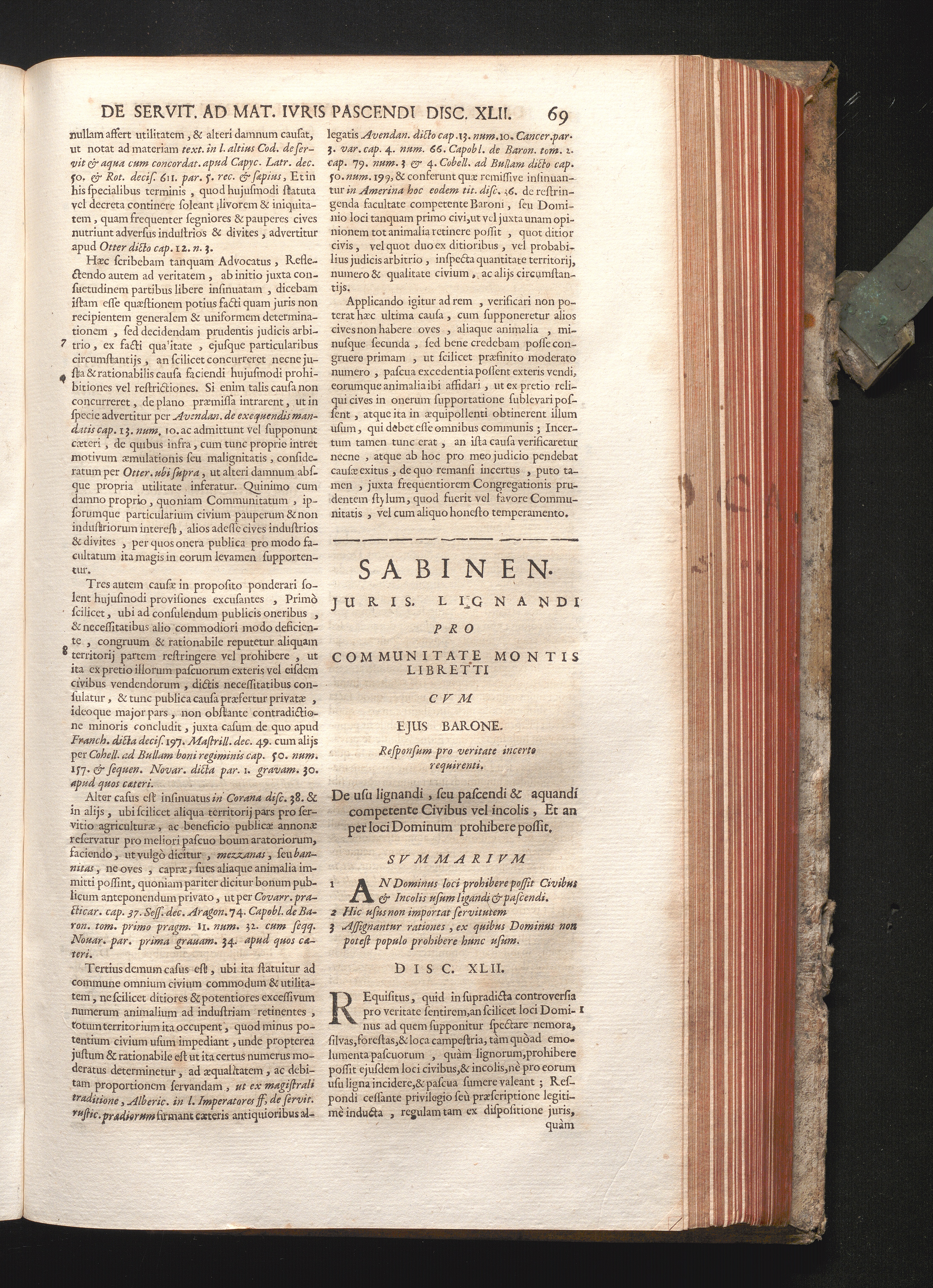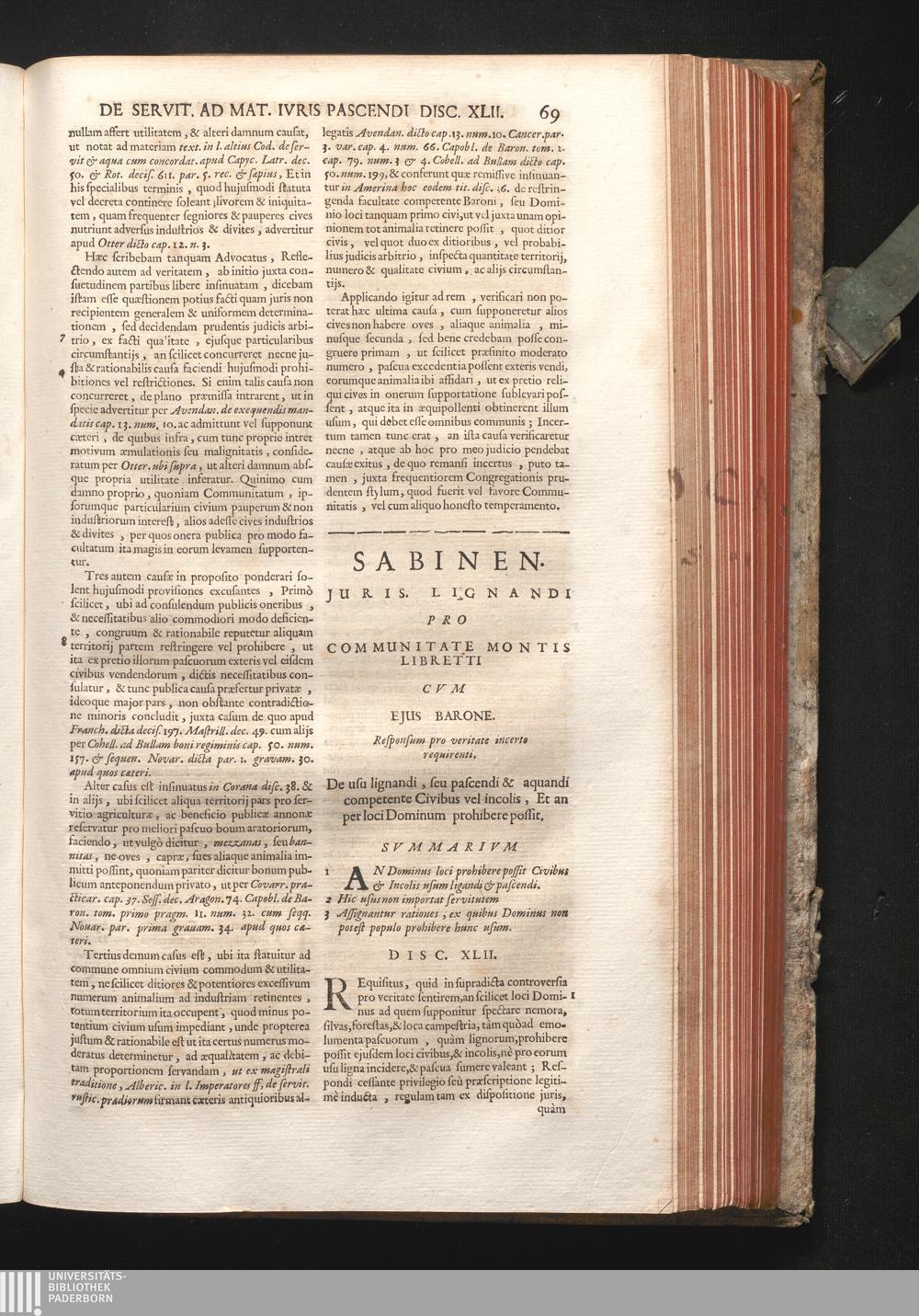 Disc. XLII. Sabinen. juris lignandi. De usu lignandi, seu pascendi & aquandi competente[...]
