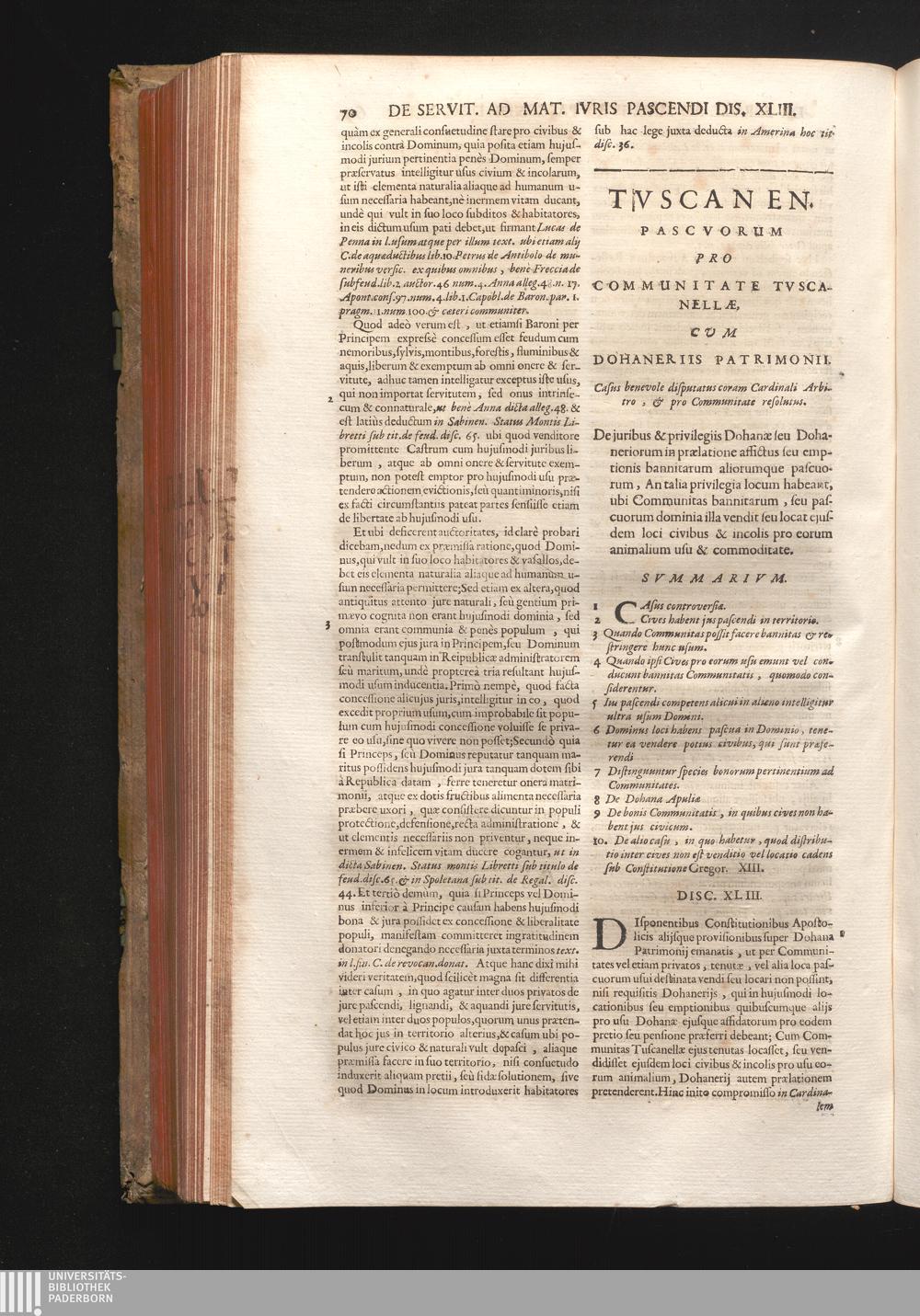 Disc. XLIII. Tuscanen. Pascuorum. De juribus & privilegiis Dohanæ seu Dohaneriorum[...]