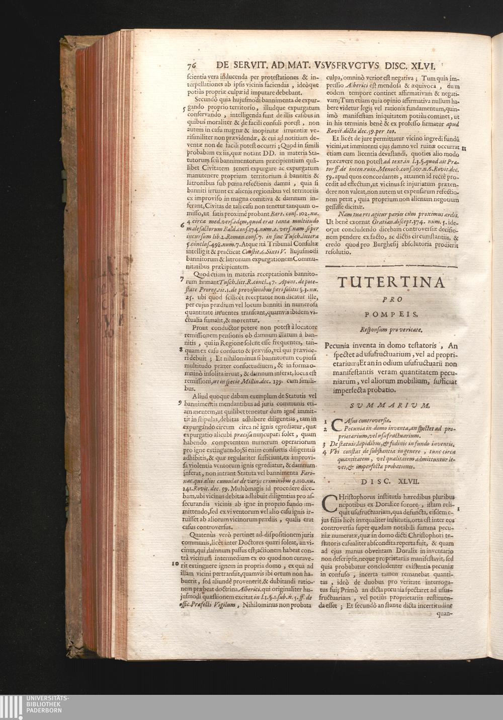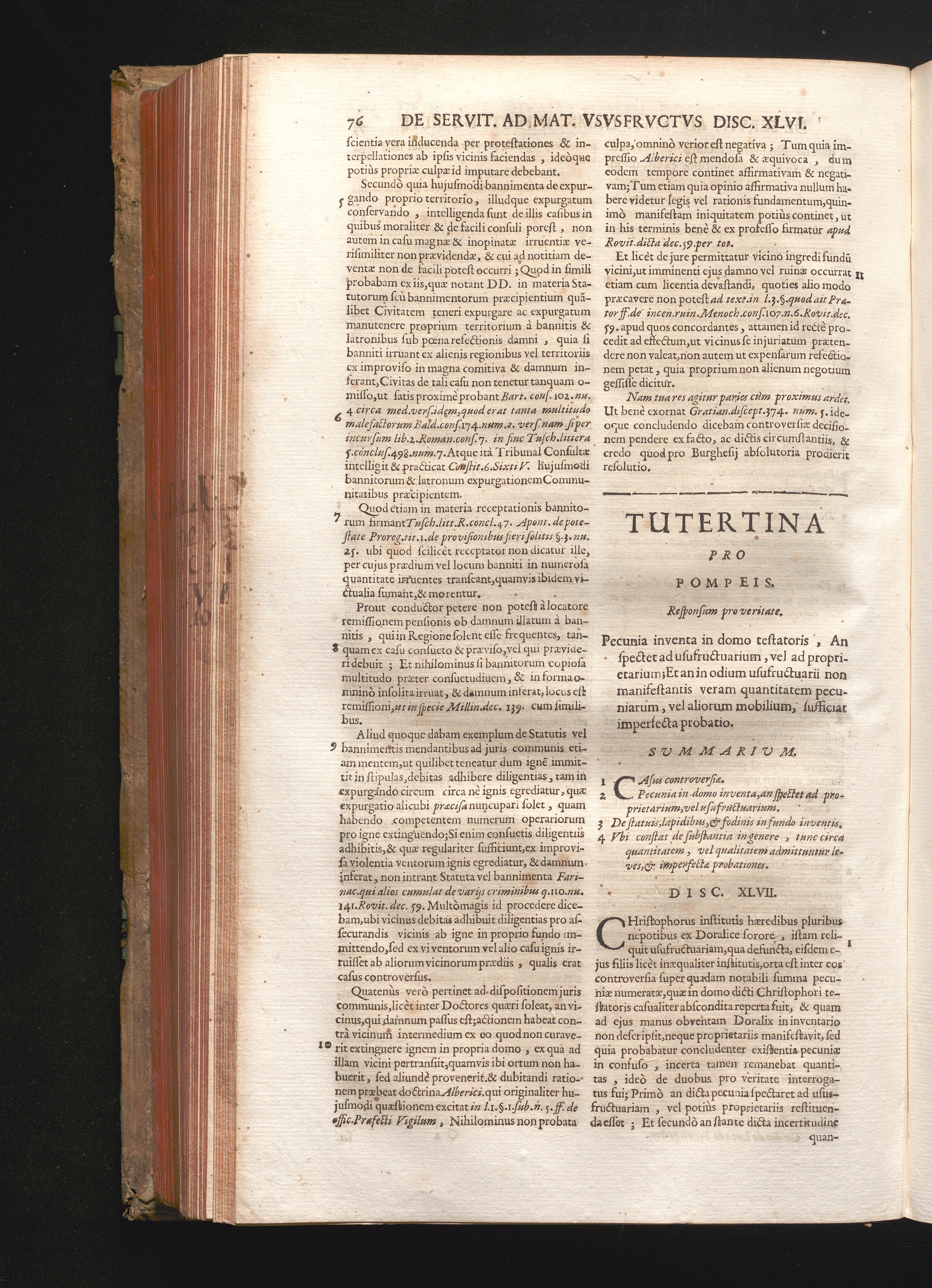 Disc. XLVII. Tudertina. Pecunia inventa in domo testatoris, An spectet ad usufructuarium,[...]