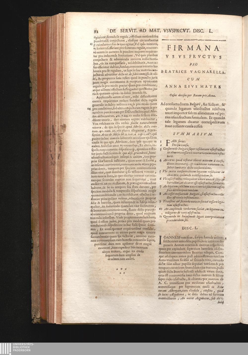 Disc. L. Firmana ususfructus. Ad consuetudinem Bulgari, An scilicet, & quando legatum[...]