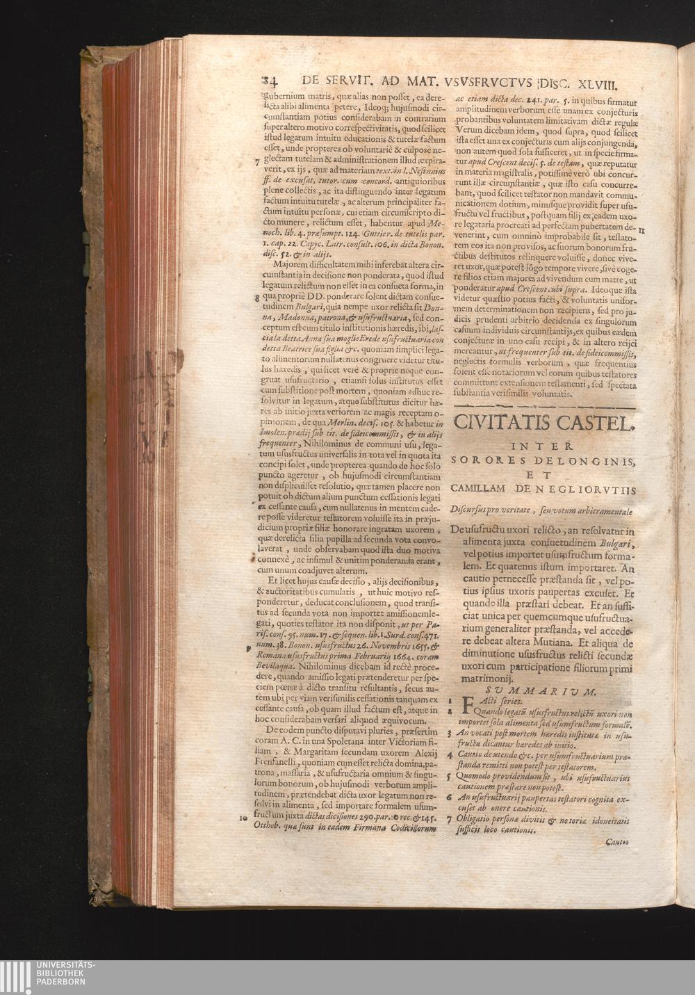 Disc. LI. Civitatis Castelli. De usufructu uxori relicto, an resolvatur in alimenta[...]