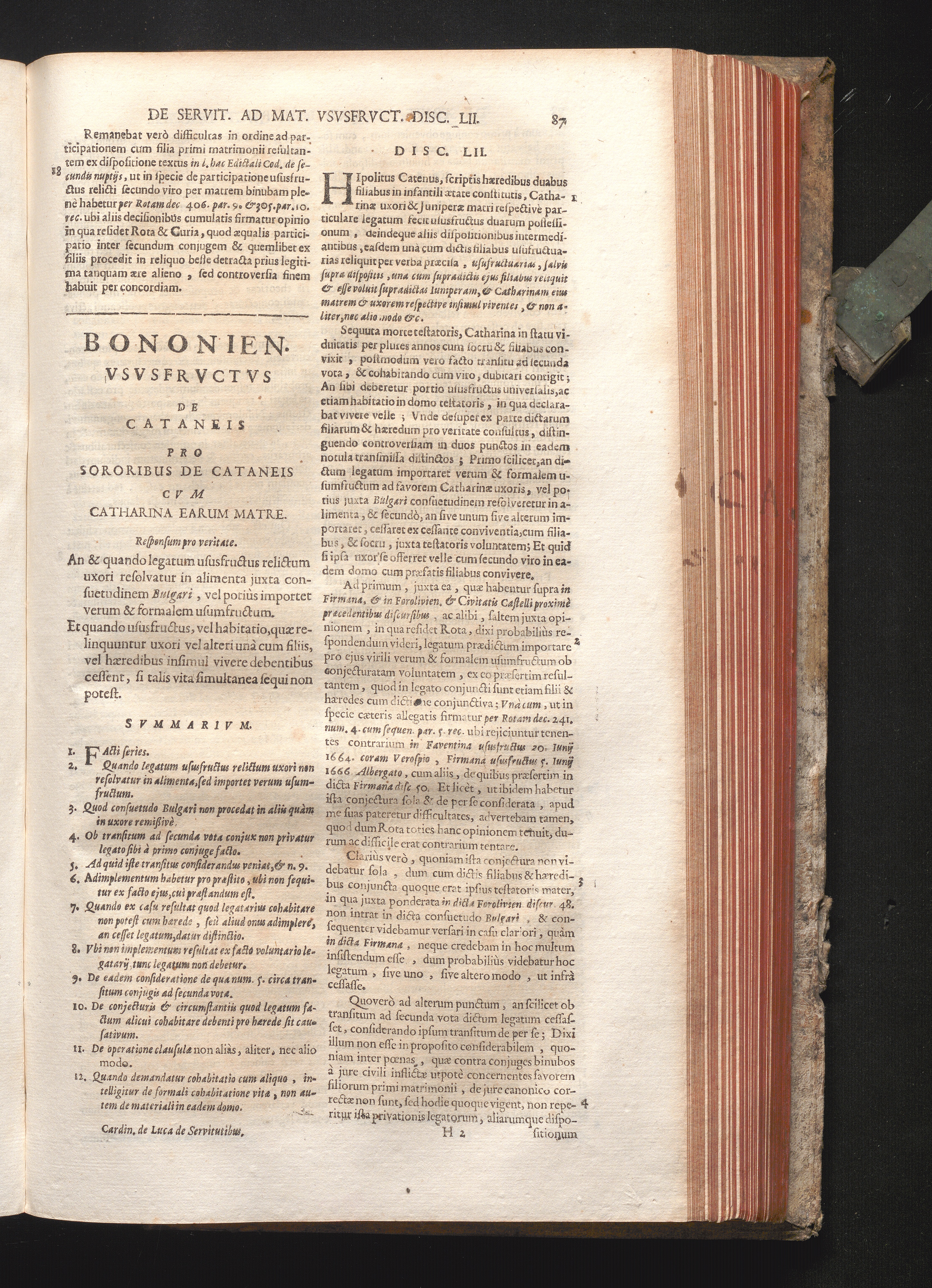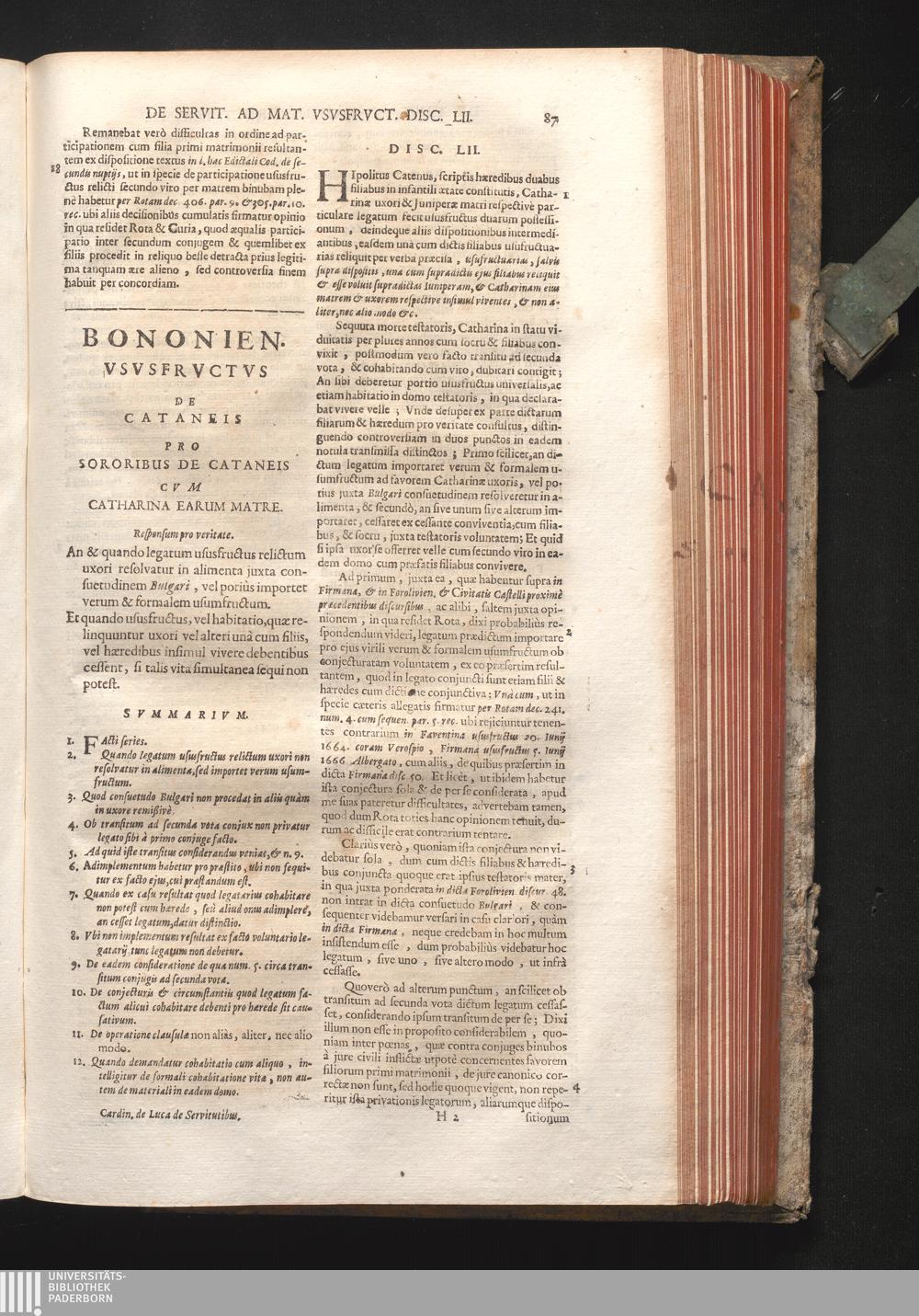 Disc. LII. Bononien. Ususfructus. An & quando legatum ususfructus relictum uxori[...]