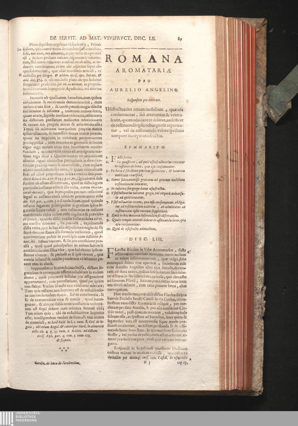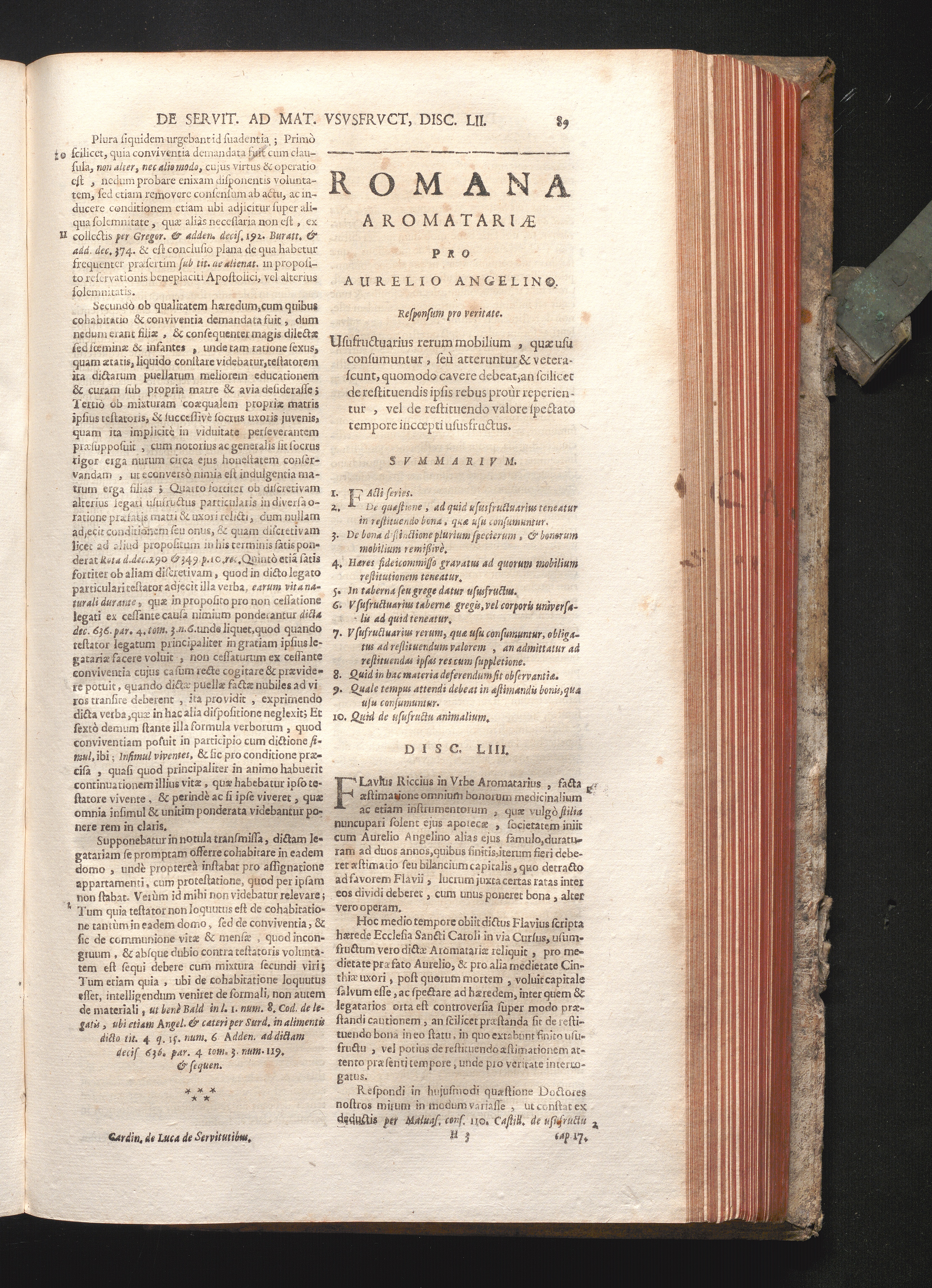 Disc. LIII. Romana Aromatariæ. Ususfructuarius rerum mobilium, quæ usu consumuntur,[...]