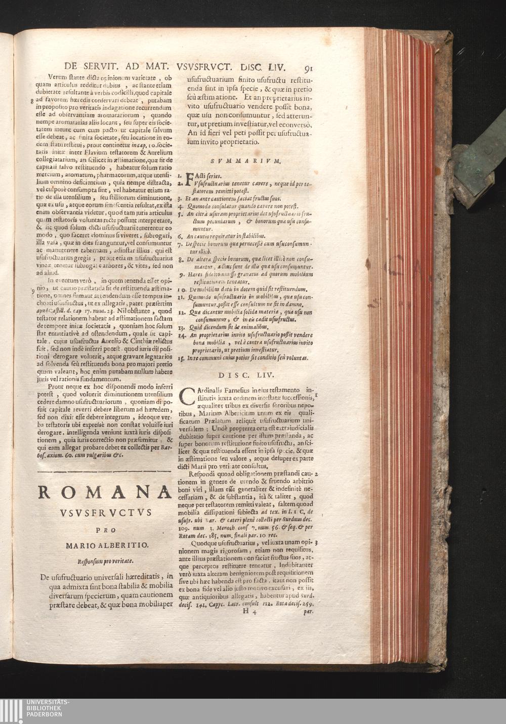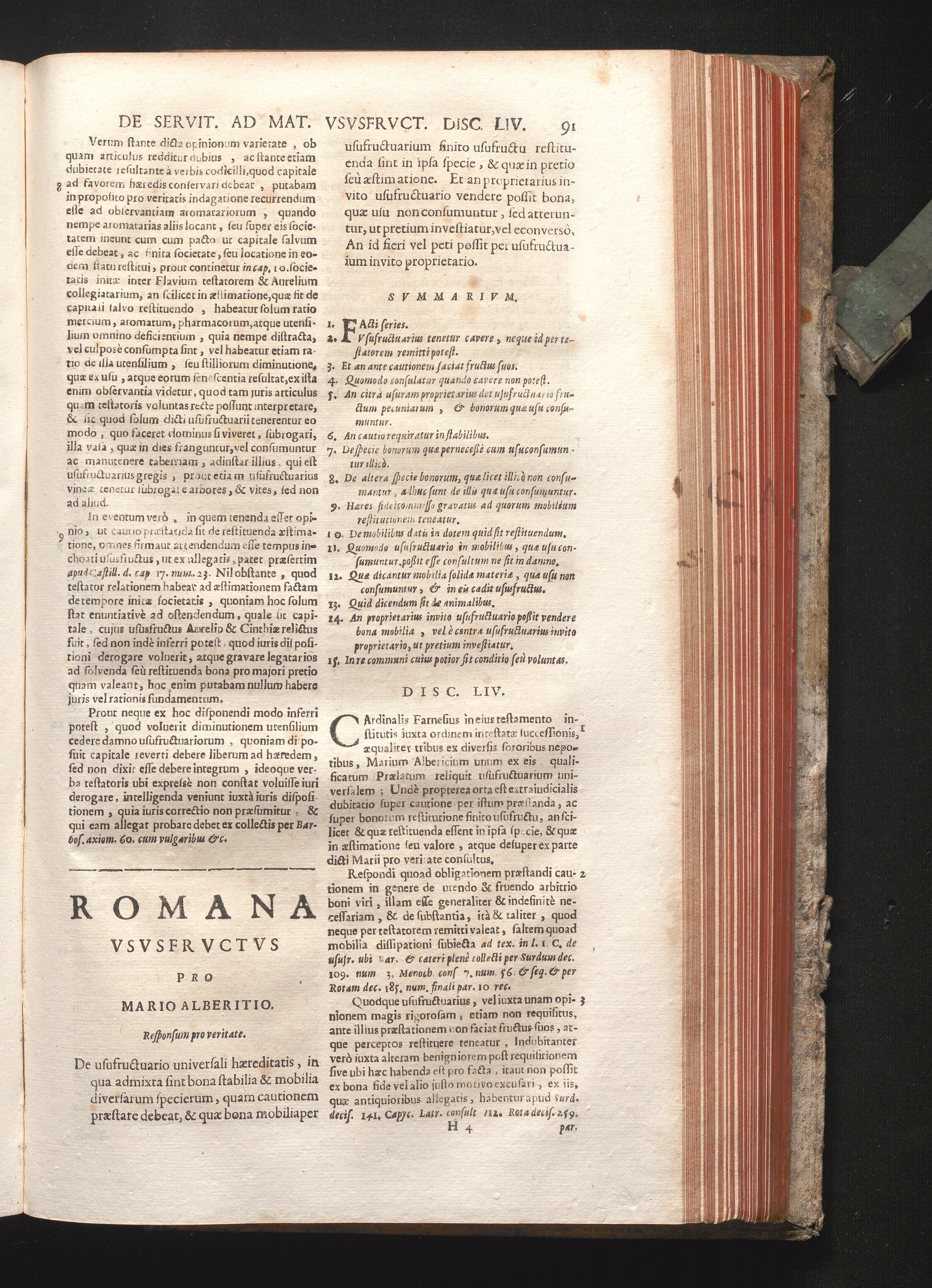Disc. LIV. Romana Ususfructus. De usufr[u]ctuario universali hæreditatis, in qua[...]