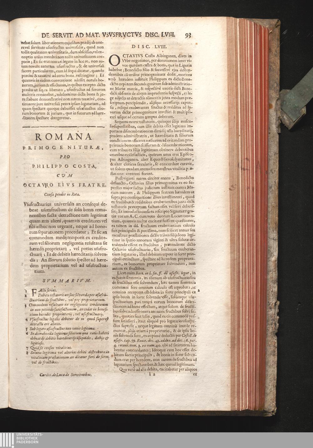Disc. LVIII. Romanam Primogenituræ. Usufructuarius universalis an consequi debeat[...]