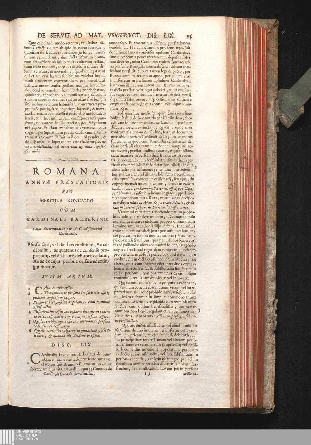 Disc. LIX. Romana annuæ præstationis. Ususfructus, vel aliud jus vitalitium, An cedi[...]