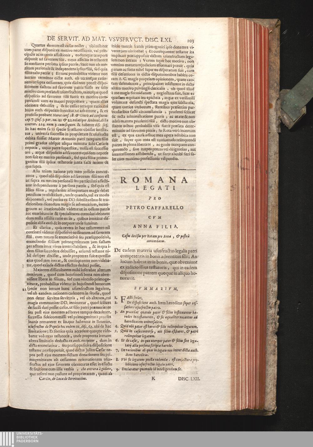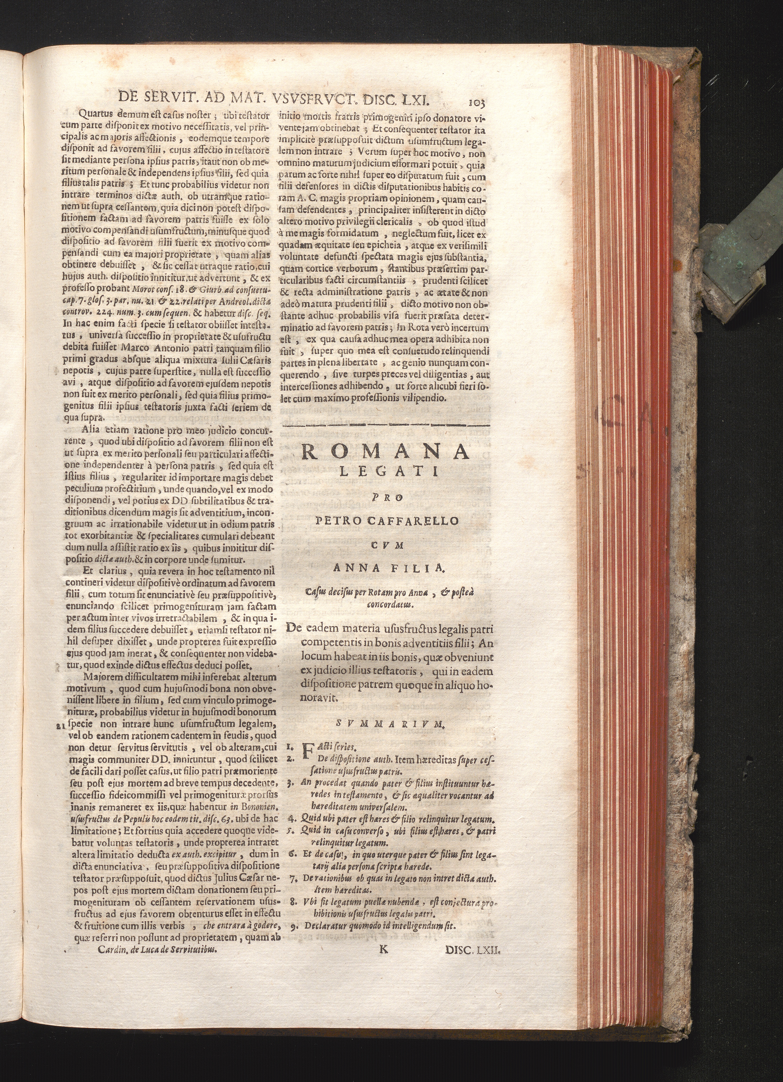 Disc. LXII. Romana Legati, De eadem materia ususfructus legalis patri competentis[...]